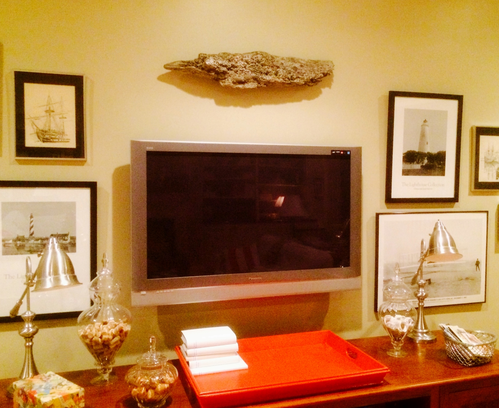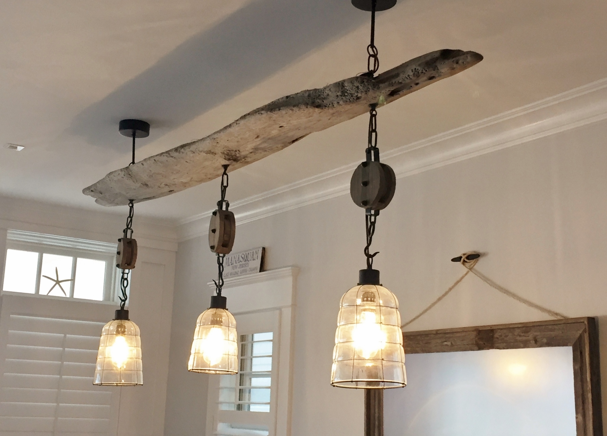 as an overhead driftwood light fixture.
