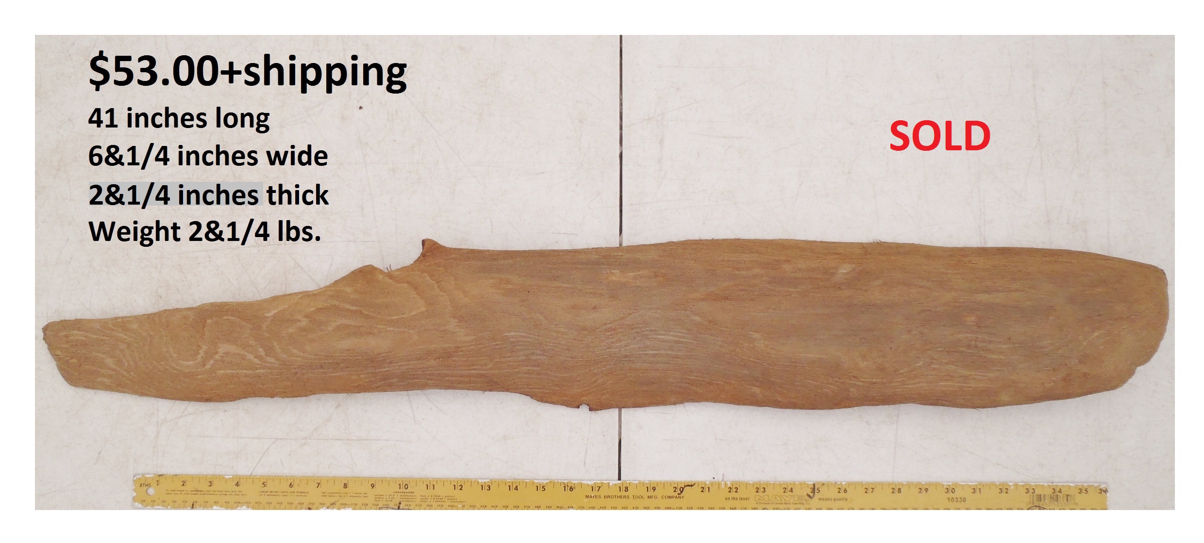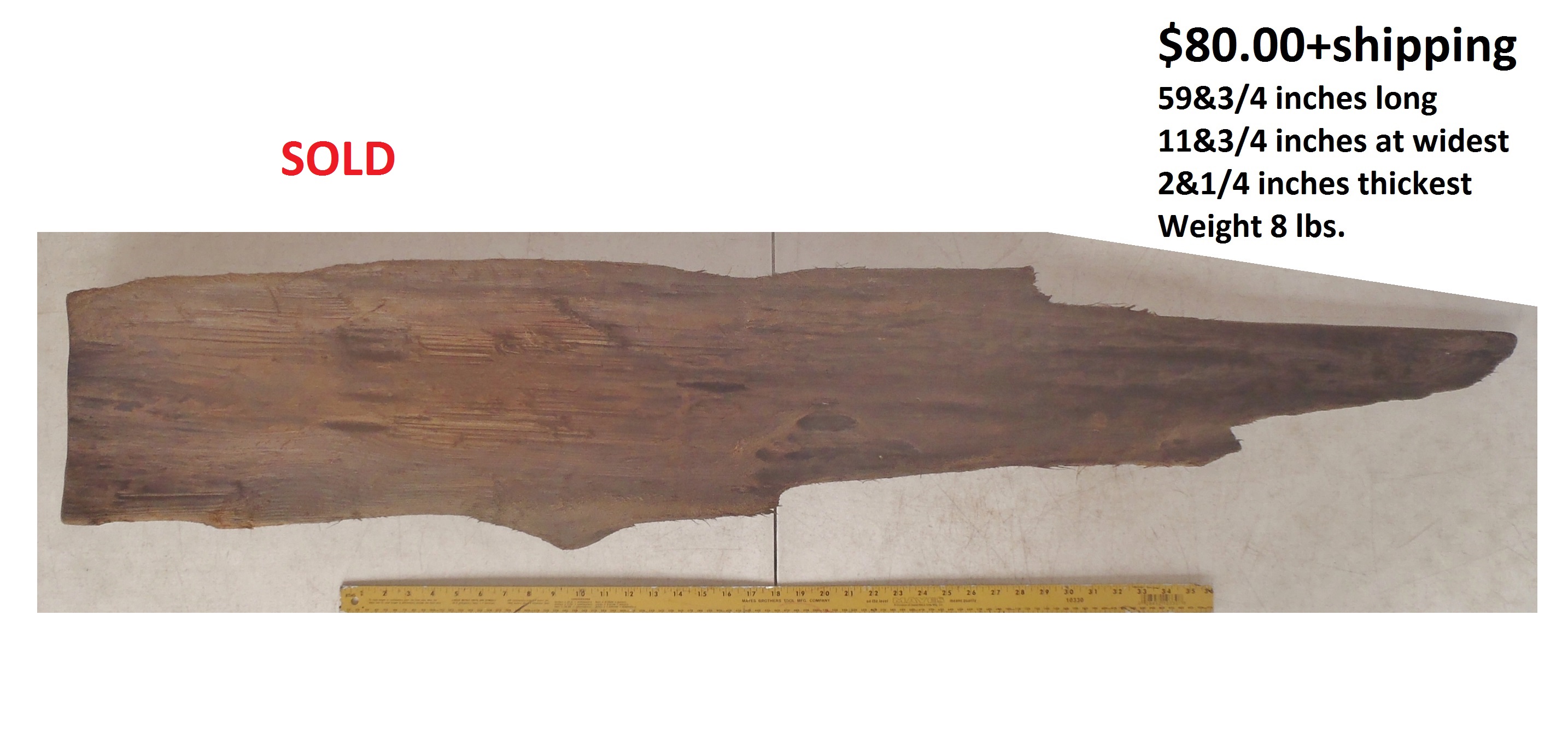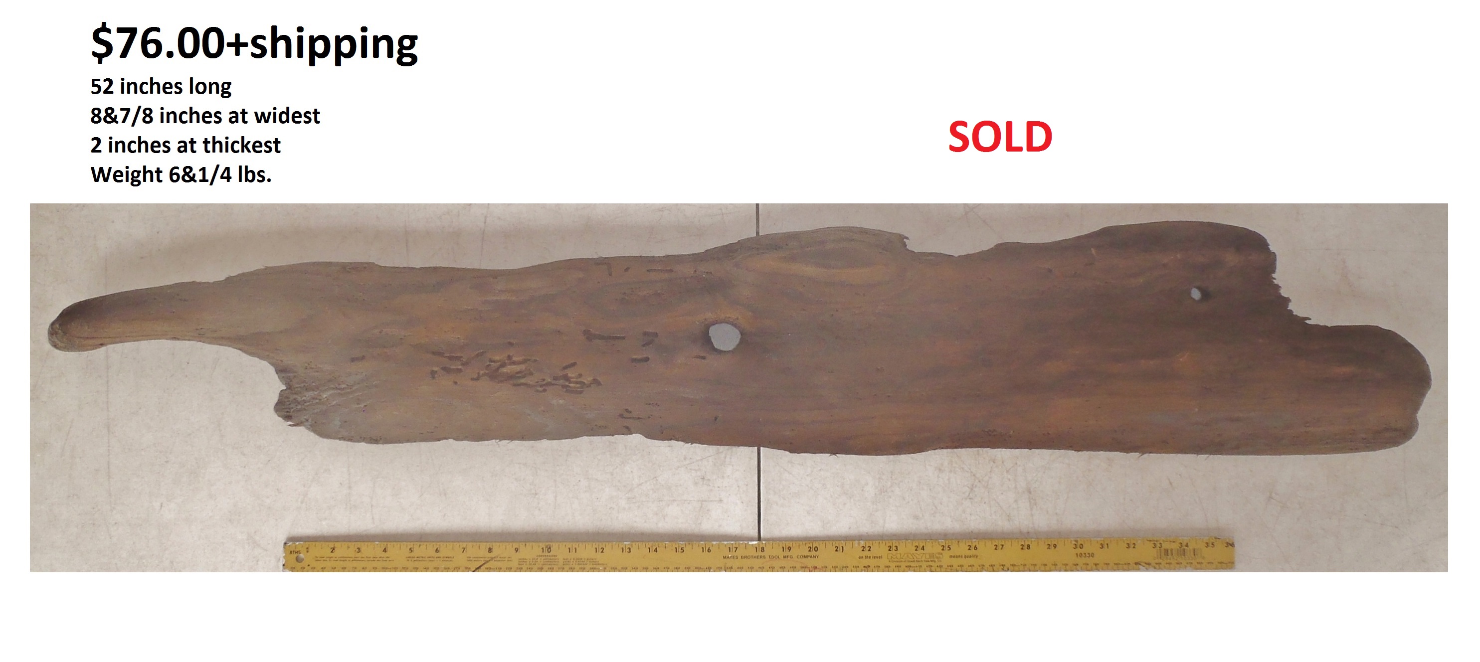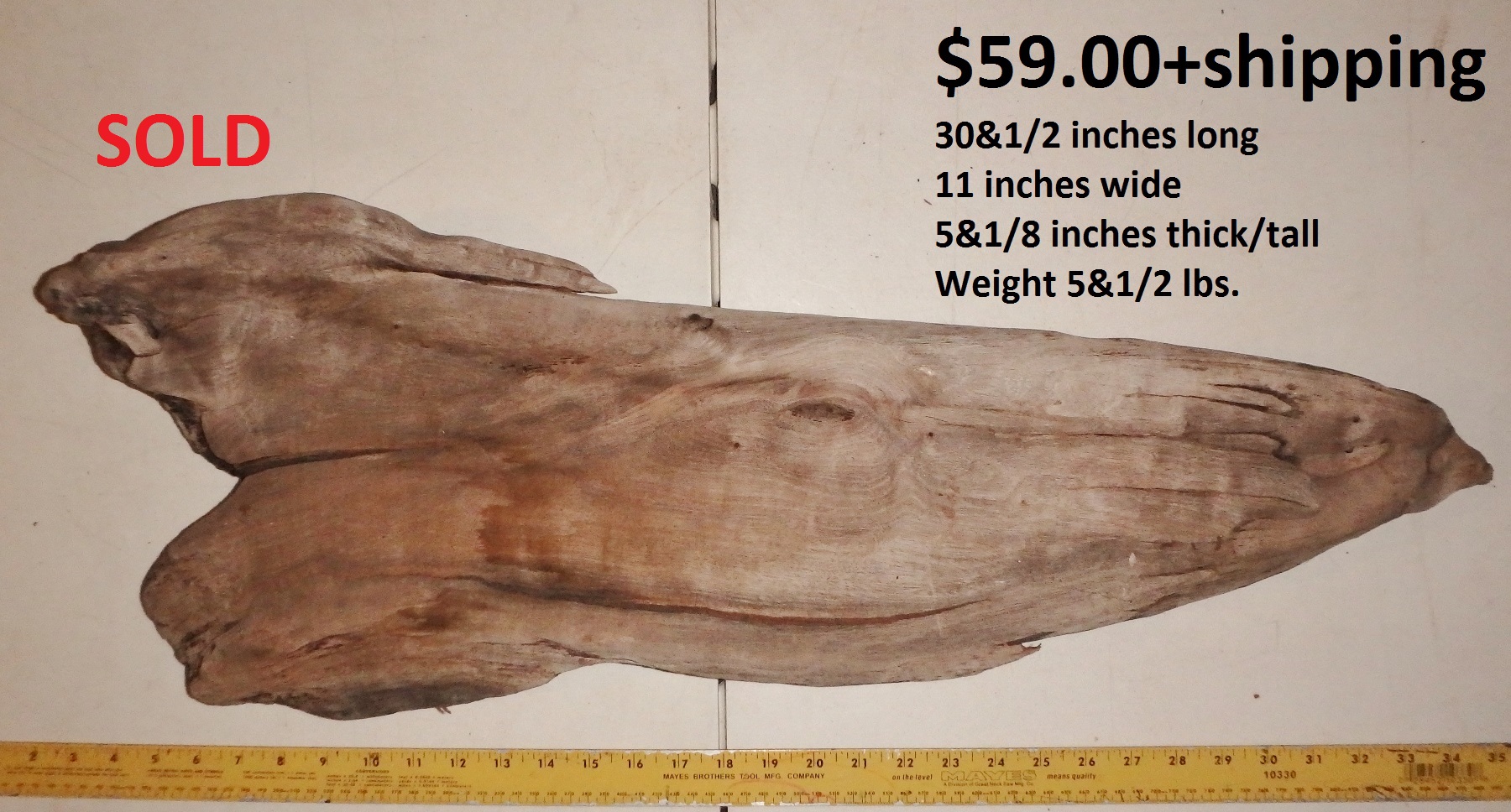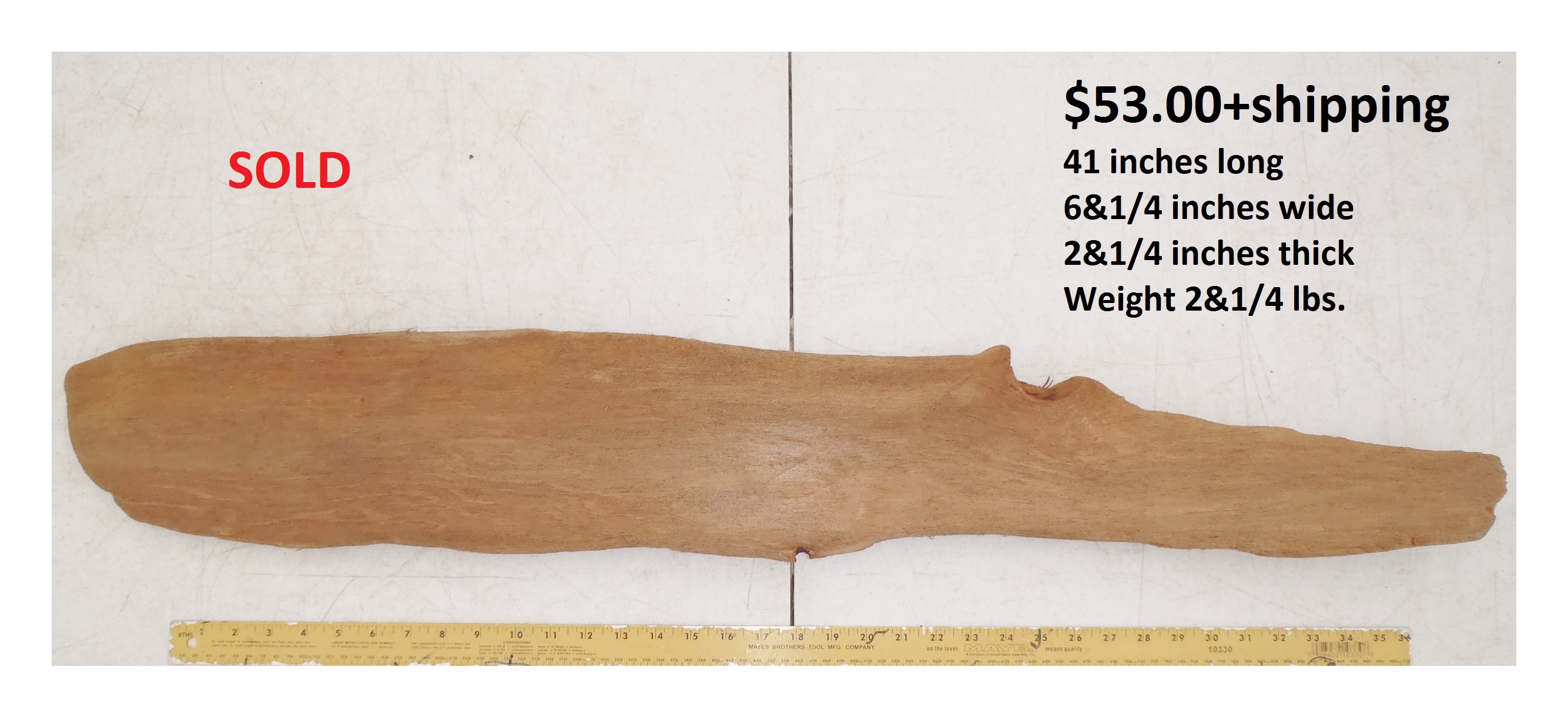 inches wide - 6&1/4 inches@thickest - Weight 5&1/4