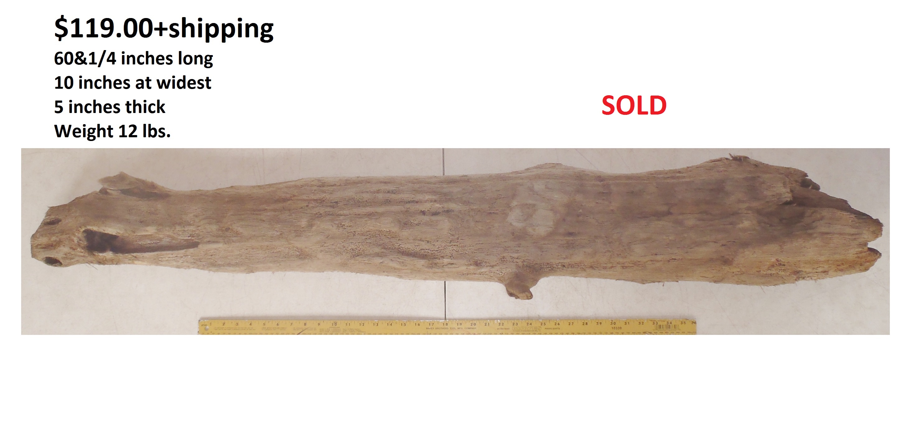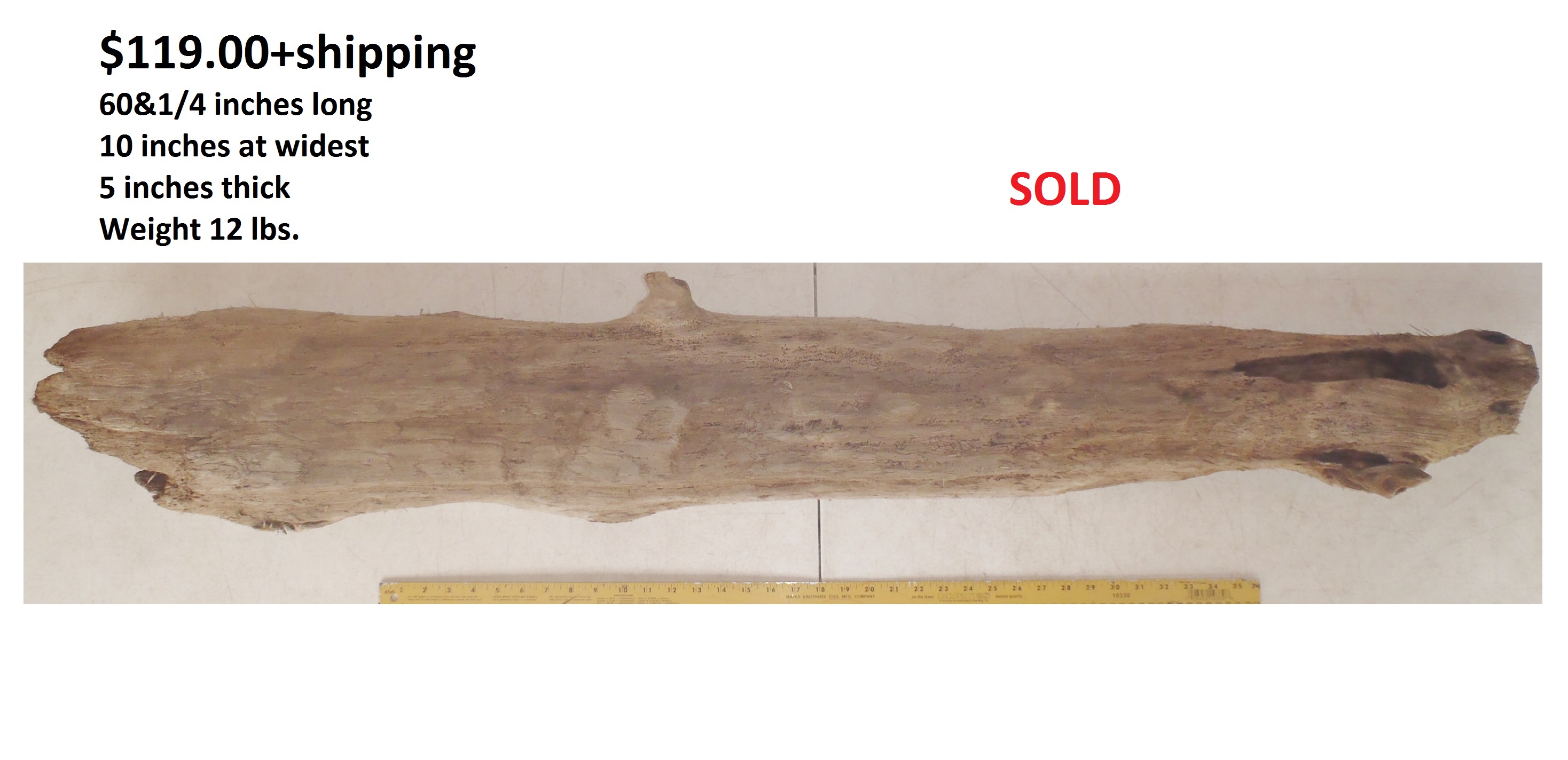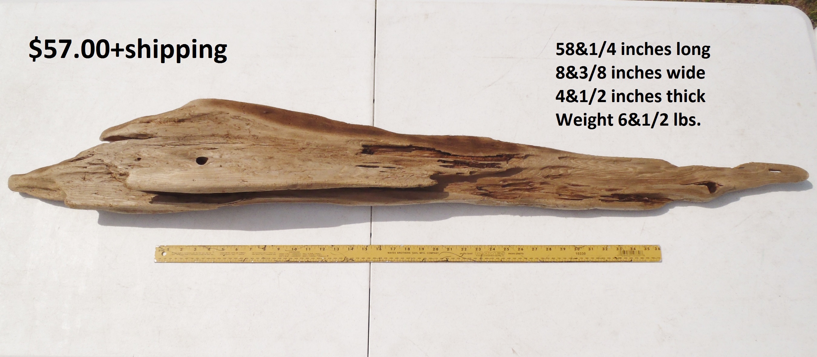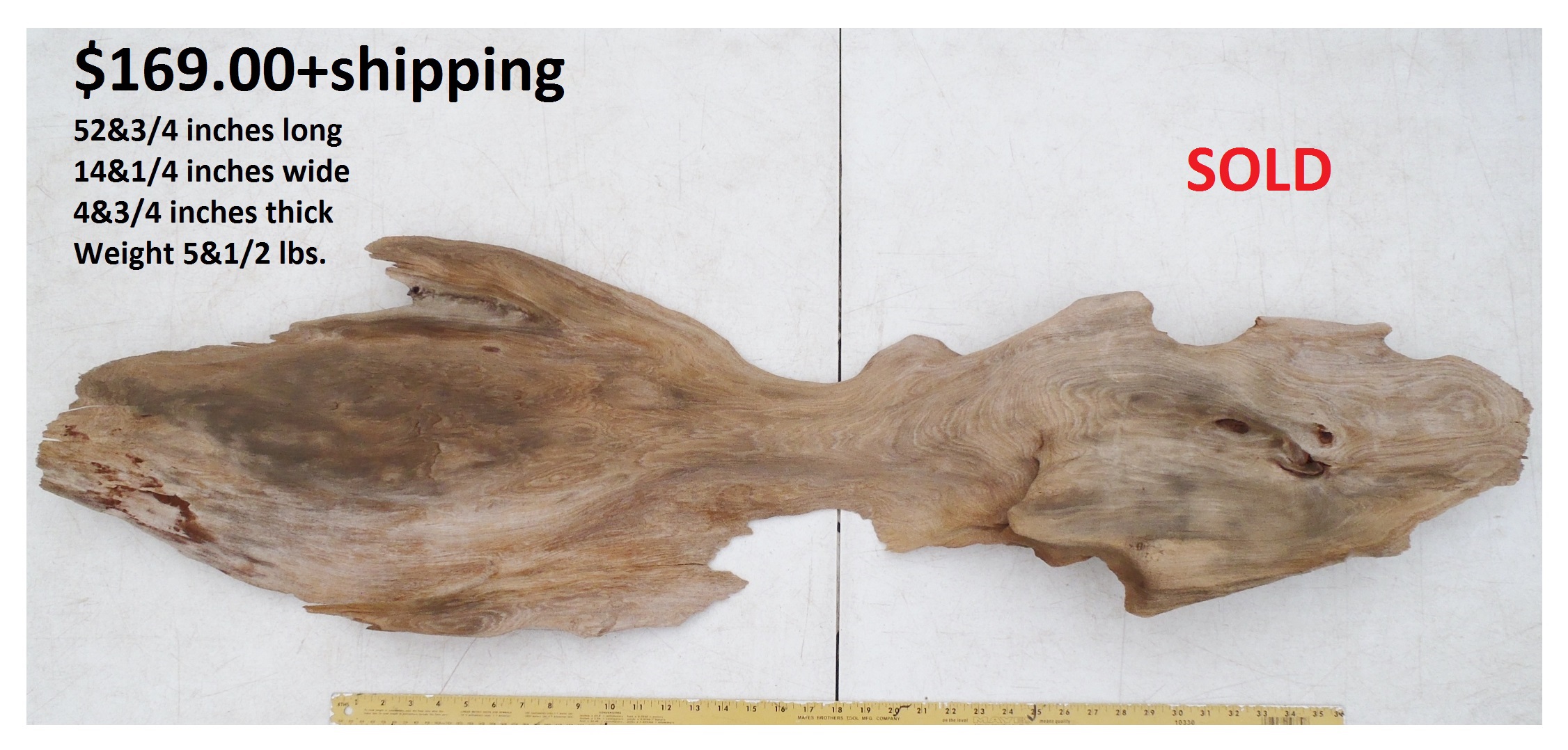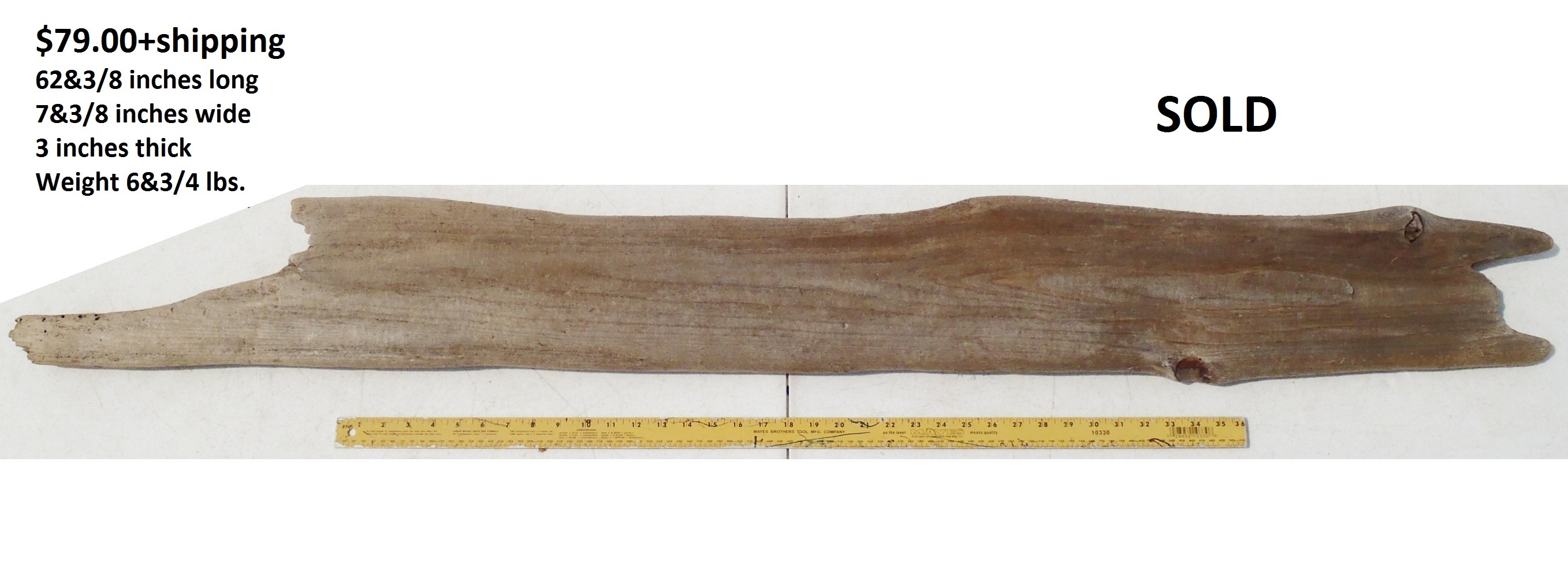 inches wide - 6&1/4 inches@thickest - Weight 5&1/4