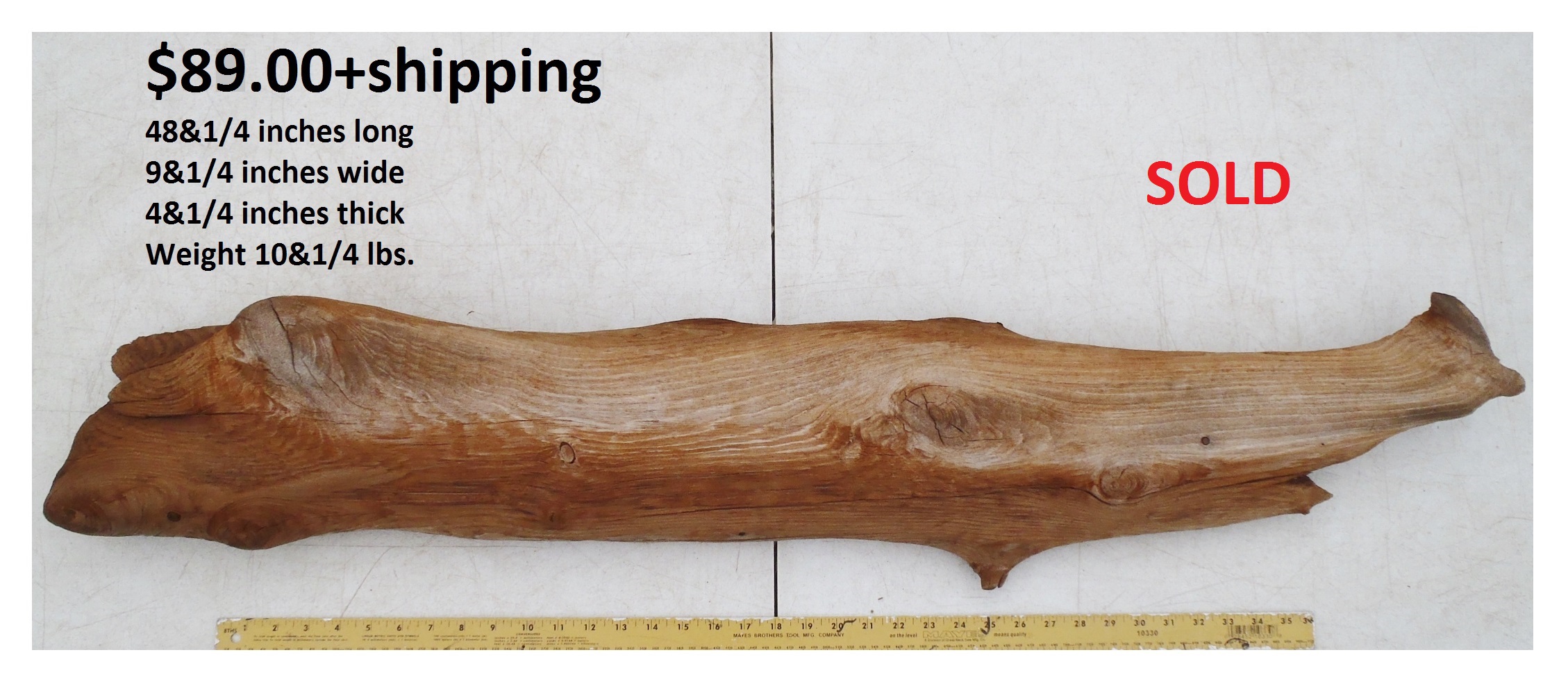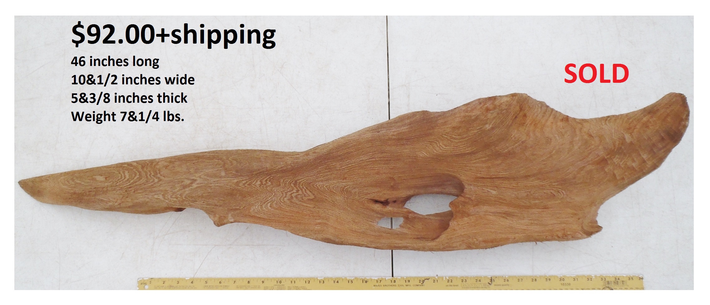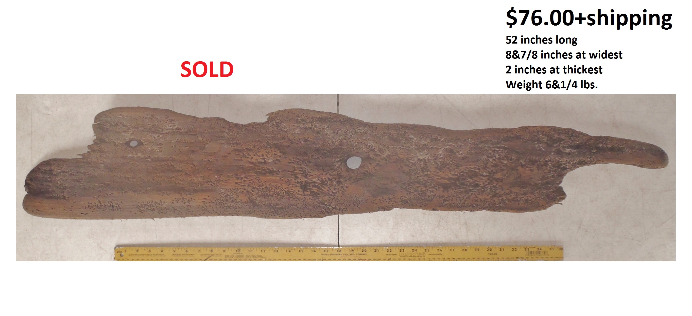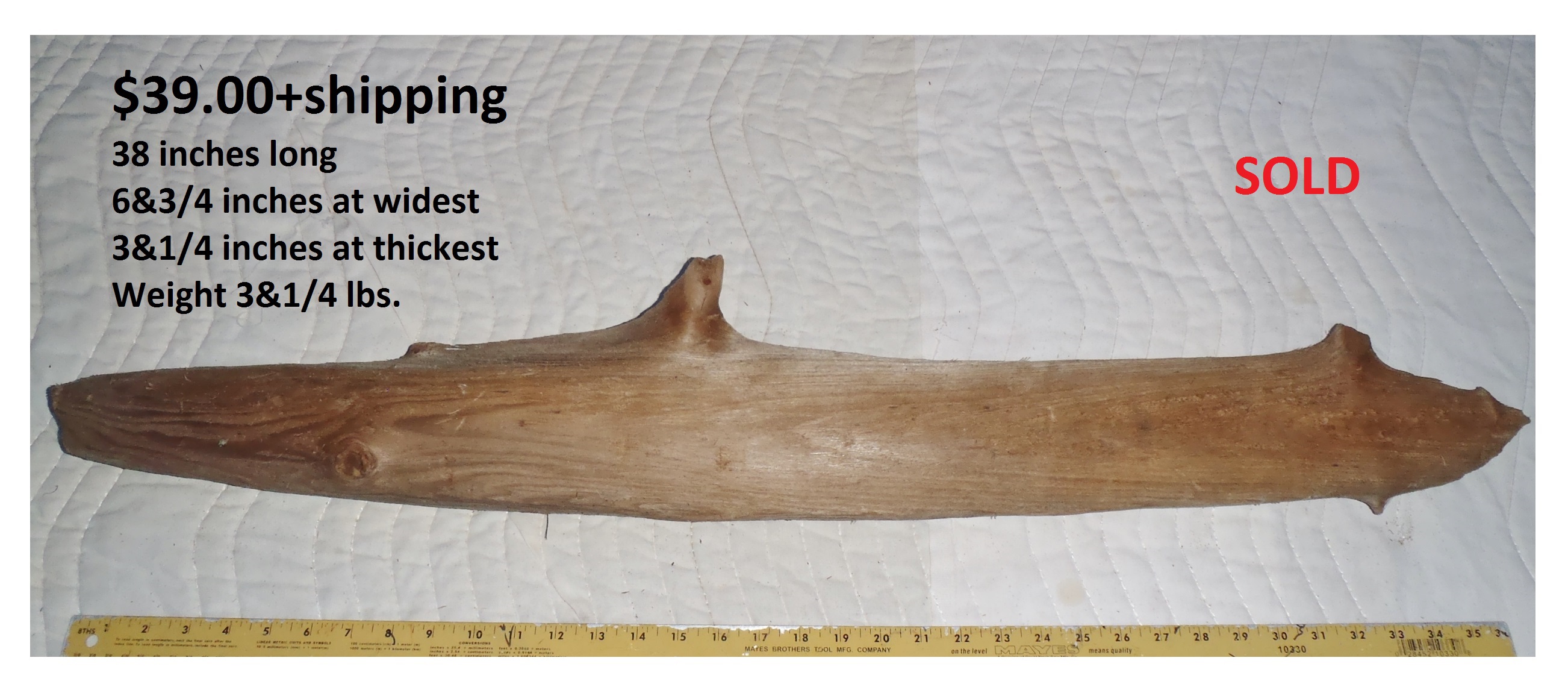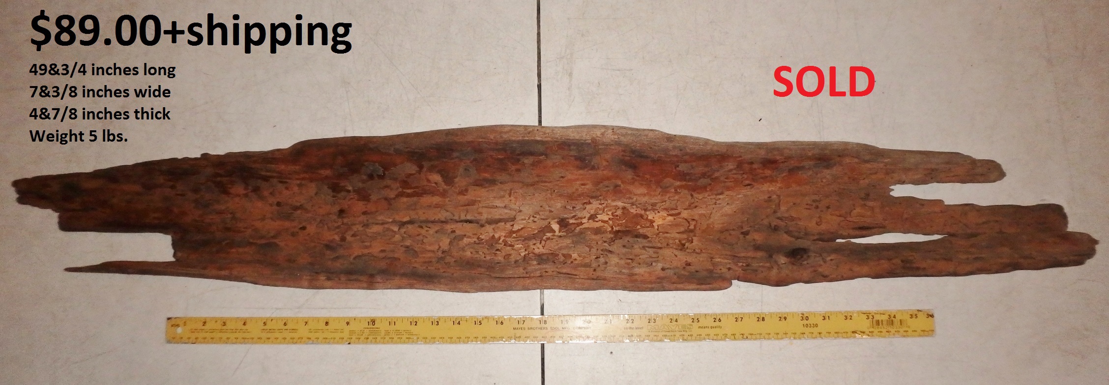 inches wide - 6&1/4 inches@thickest - Weight 5&1/4