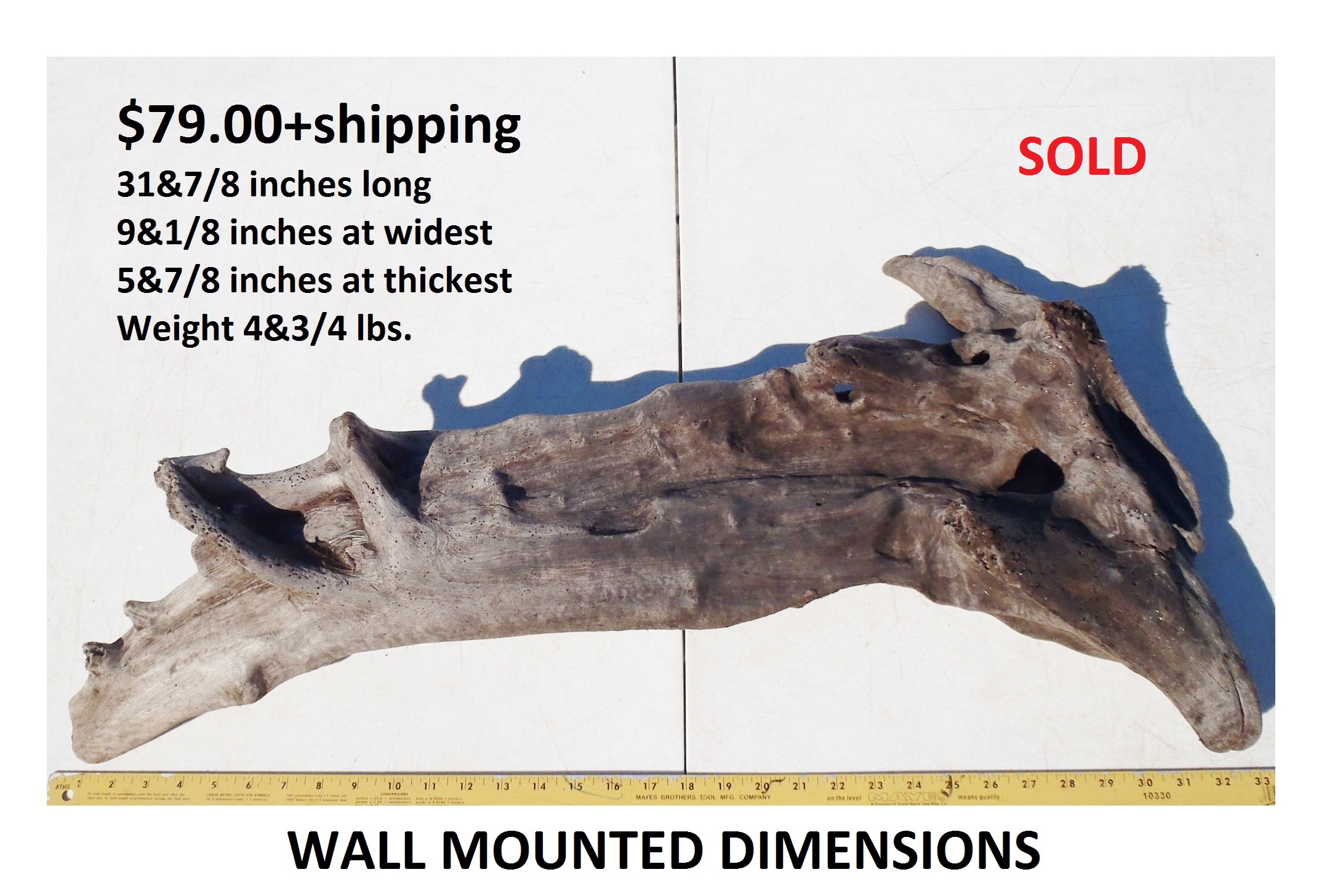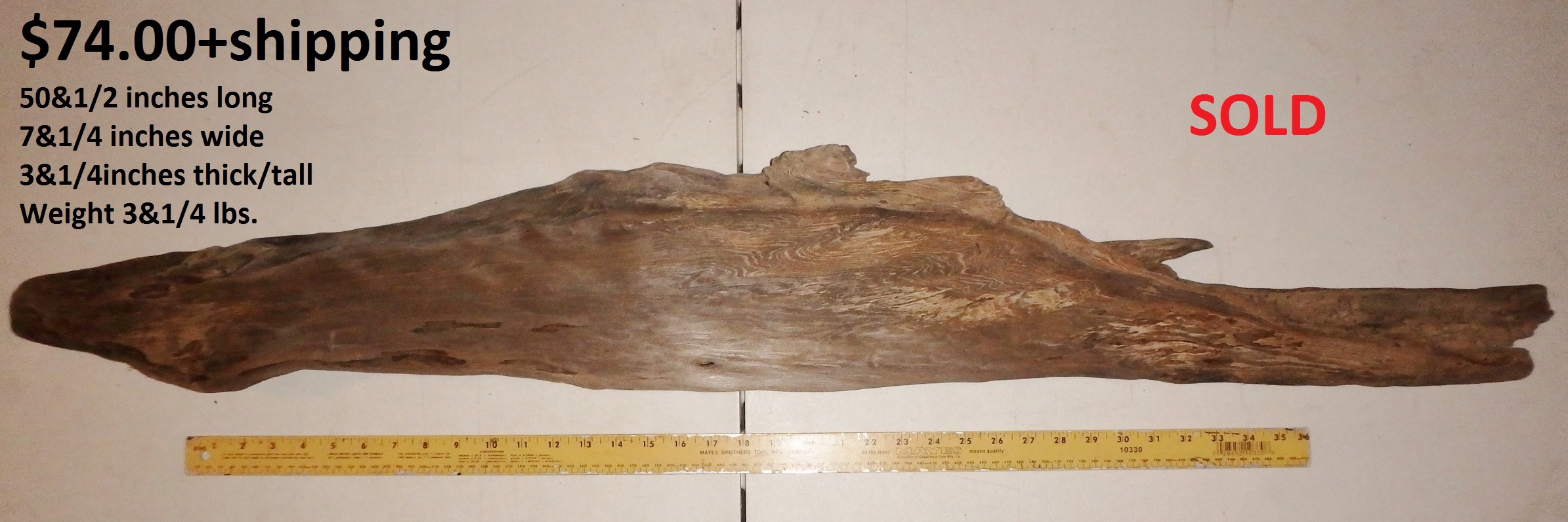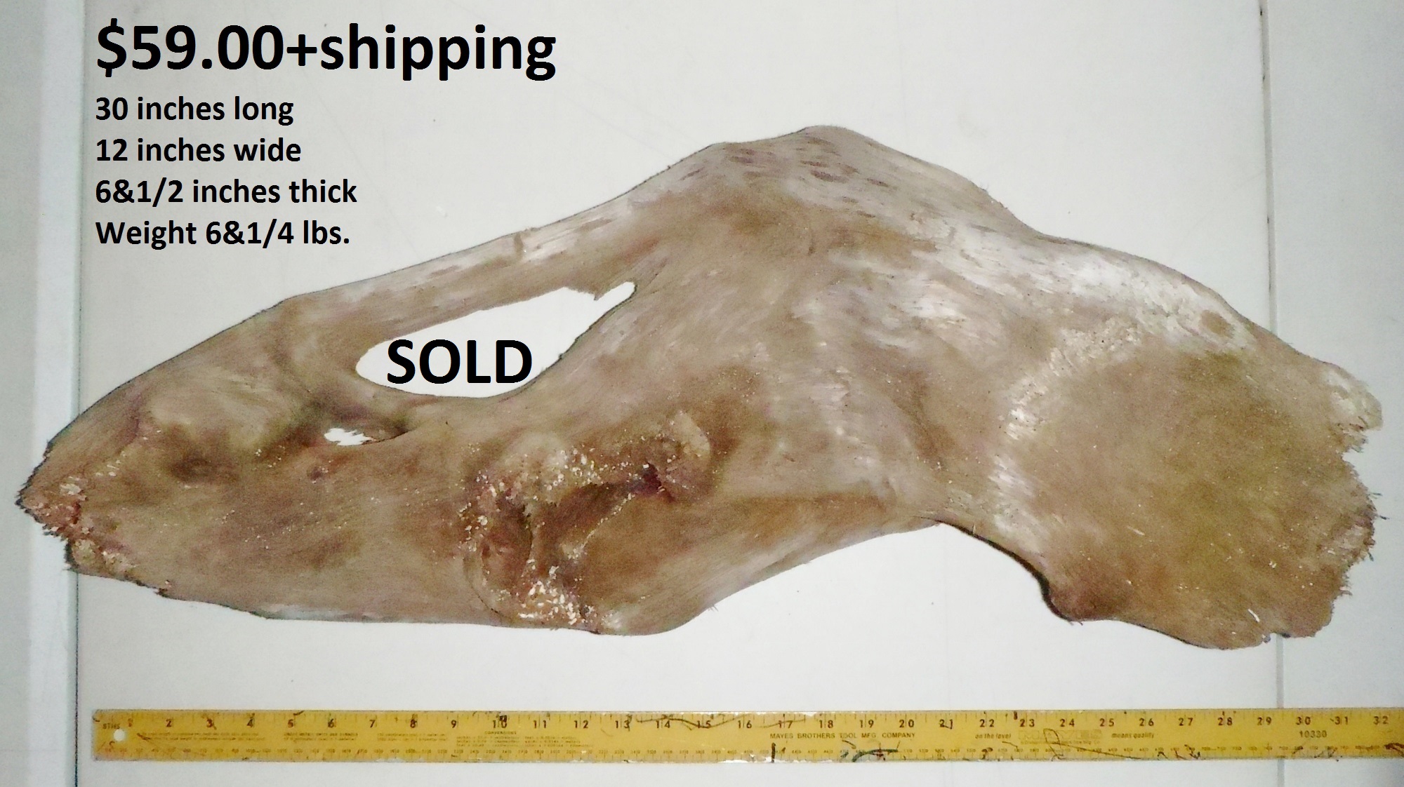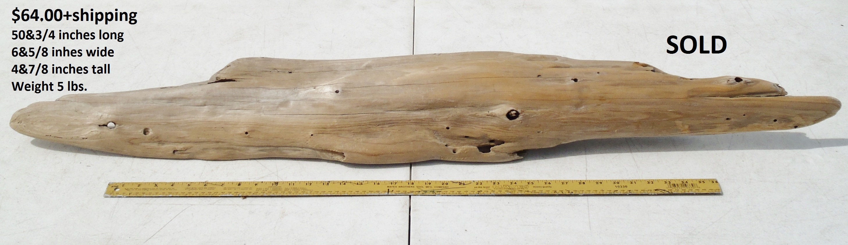 inches wide - 6&1/4 inches@thickest - Weight 5&1/4