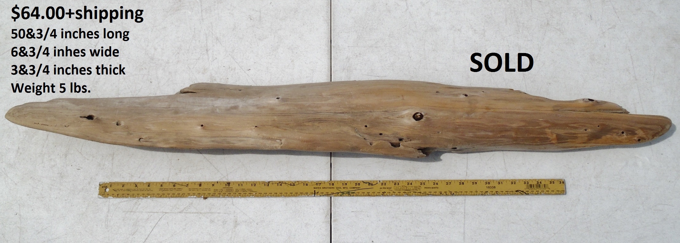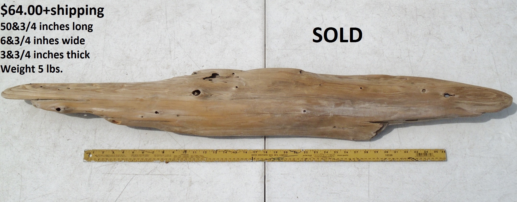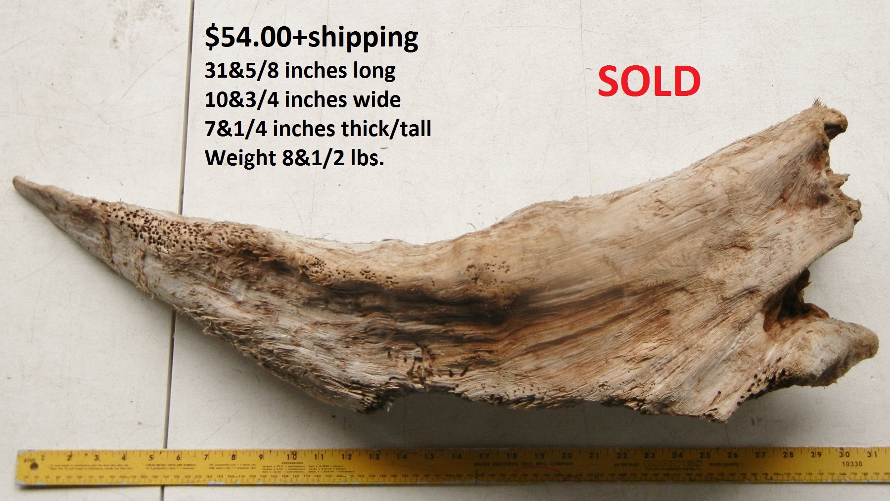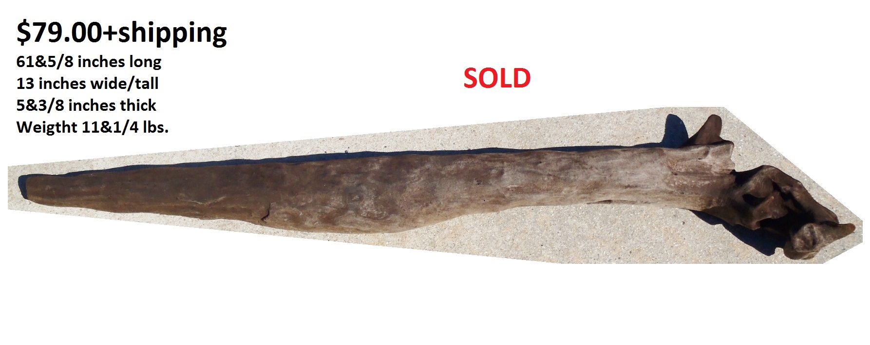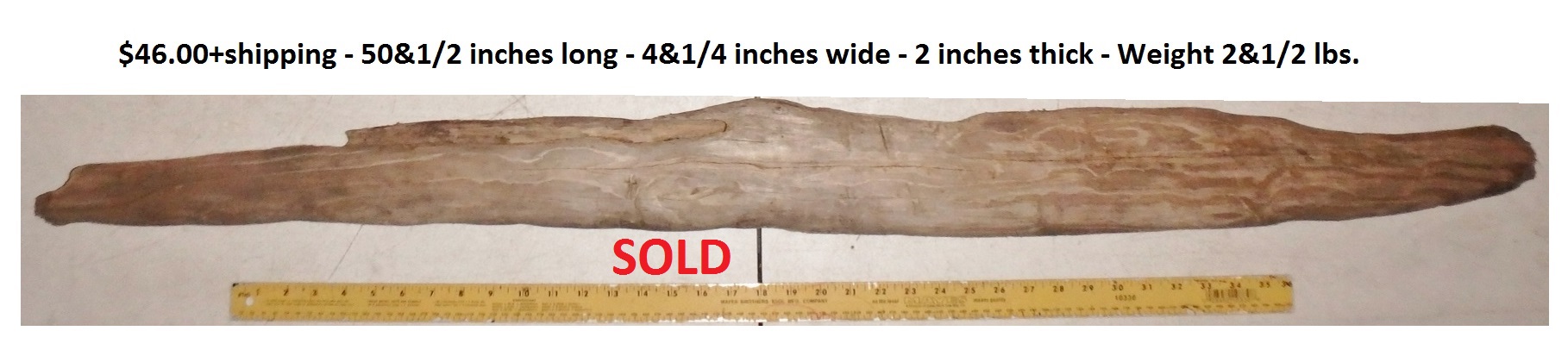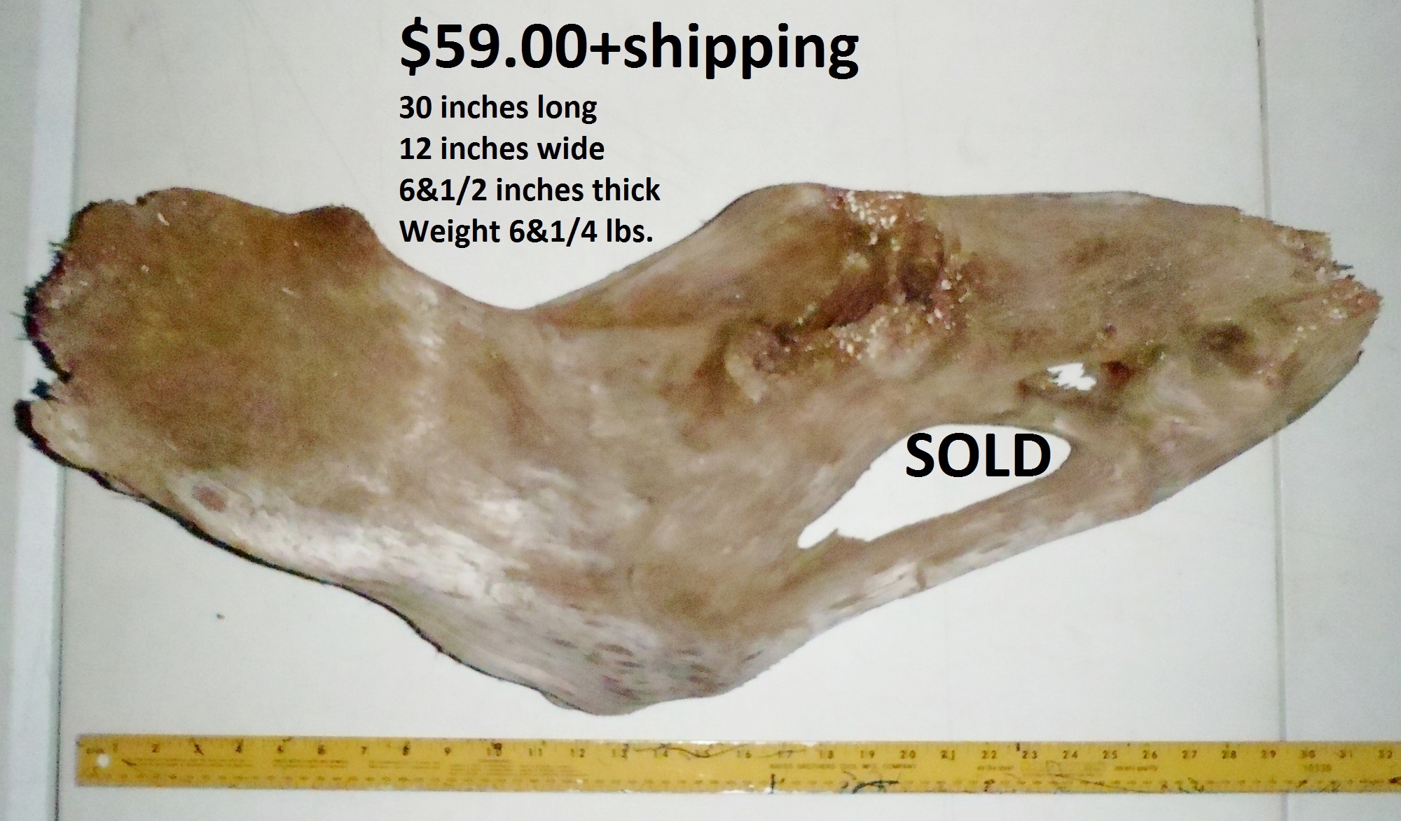 inches wide - 6&1/4 inches@thickest - Weight 5&1/4