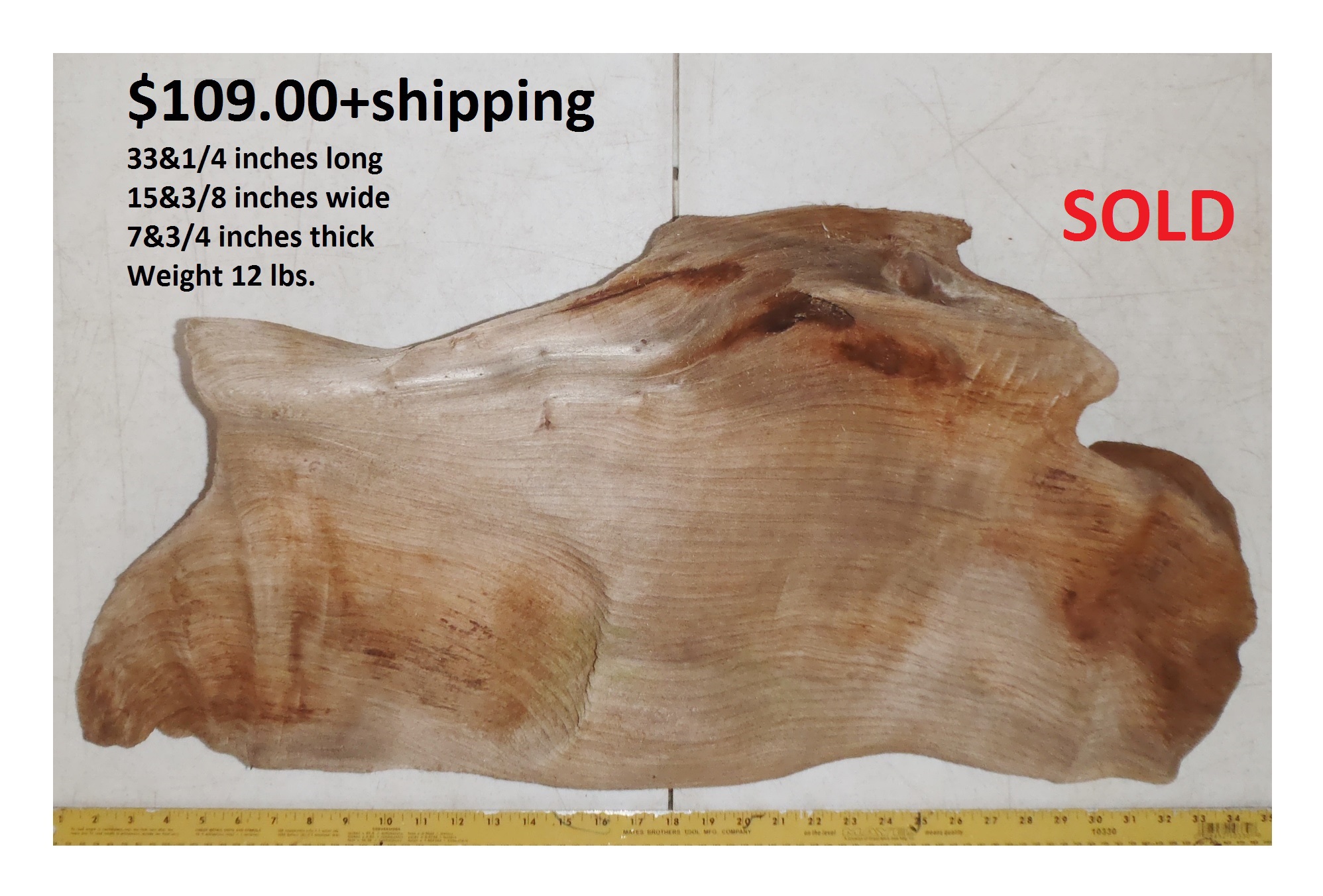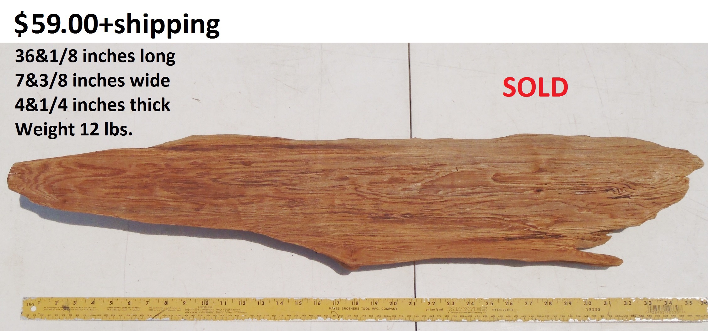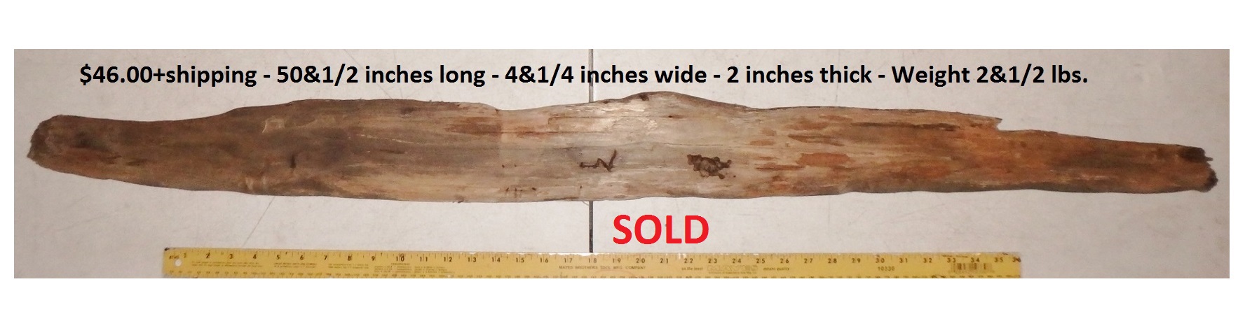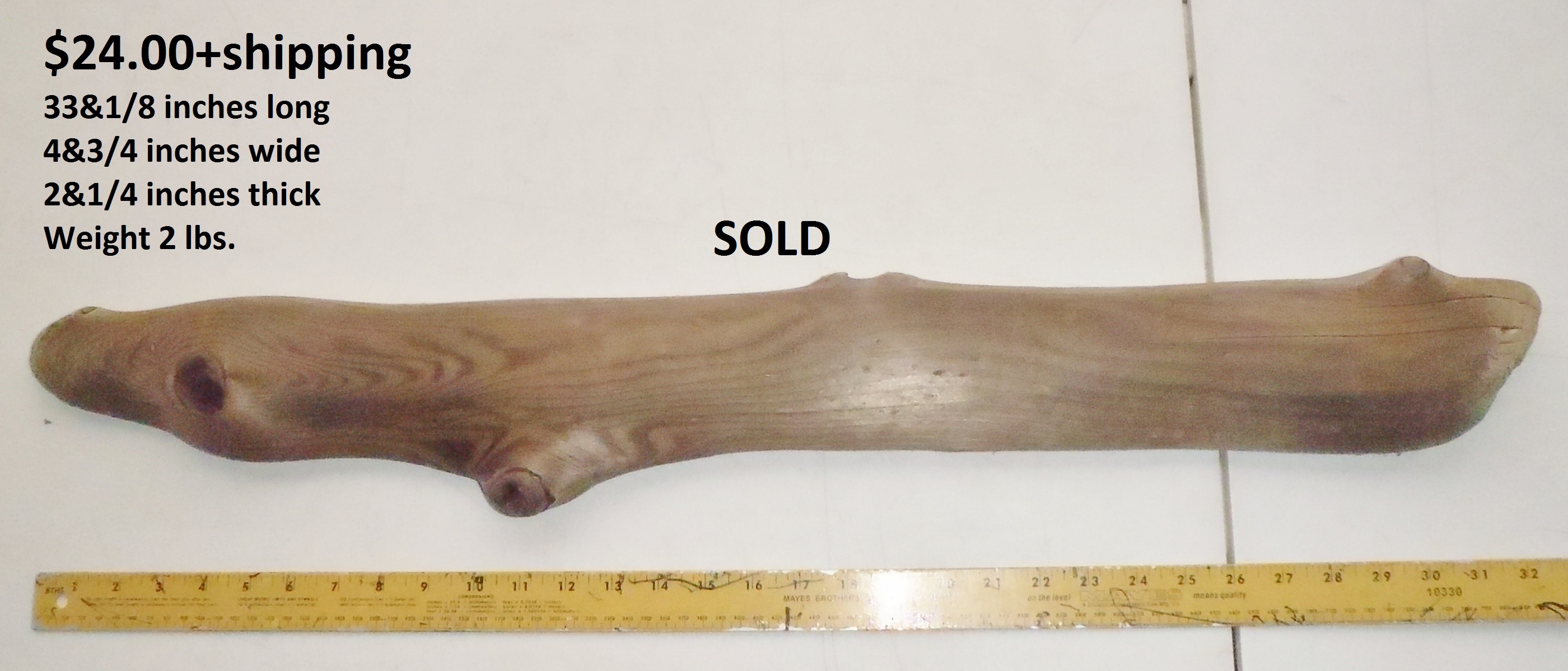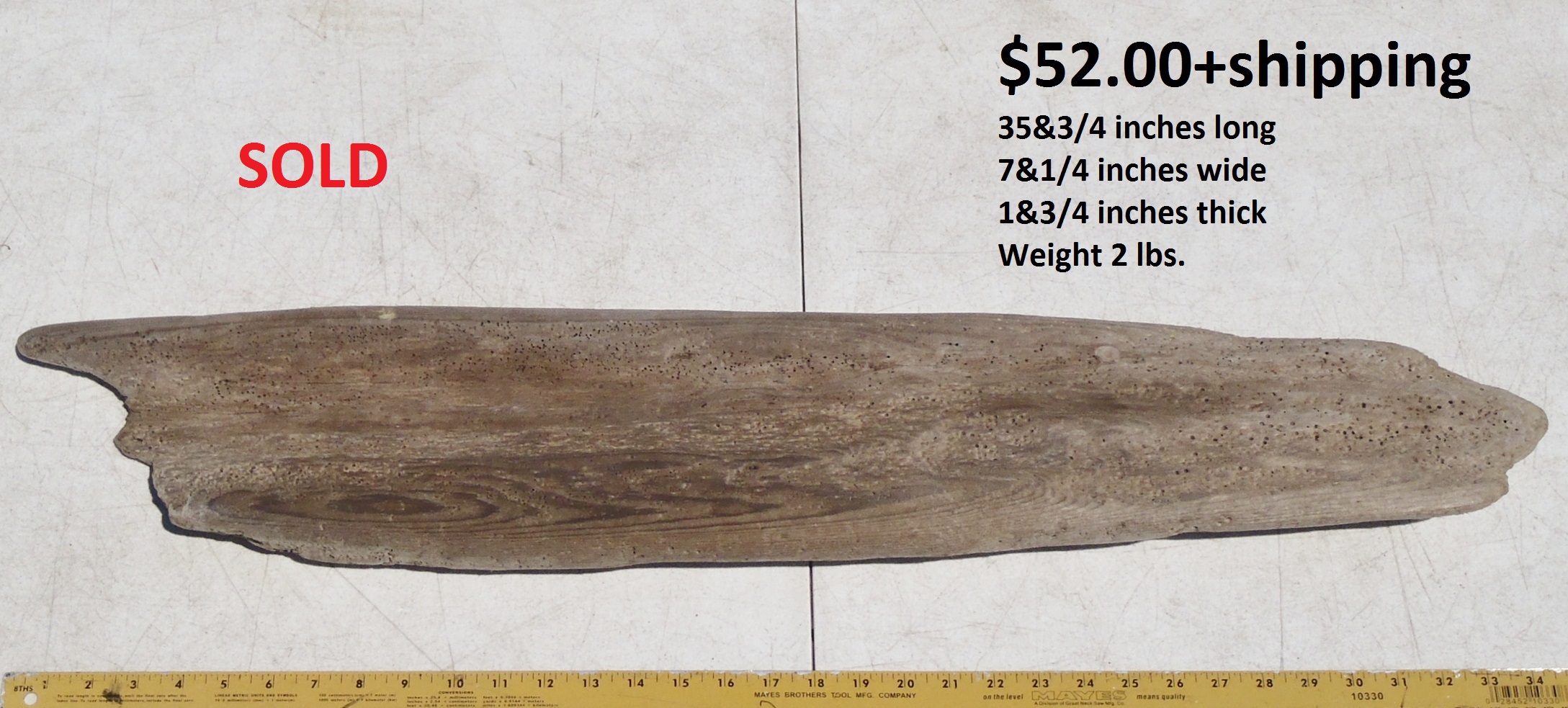 inches wide - 6&1/4 inches@thickest - Weight 5&1/4