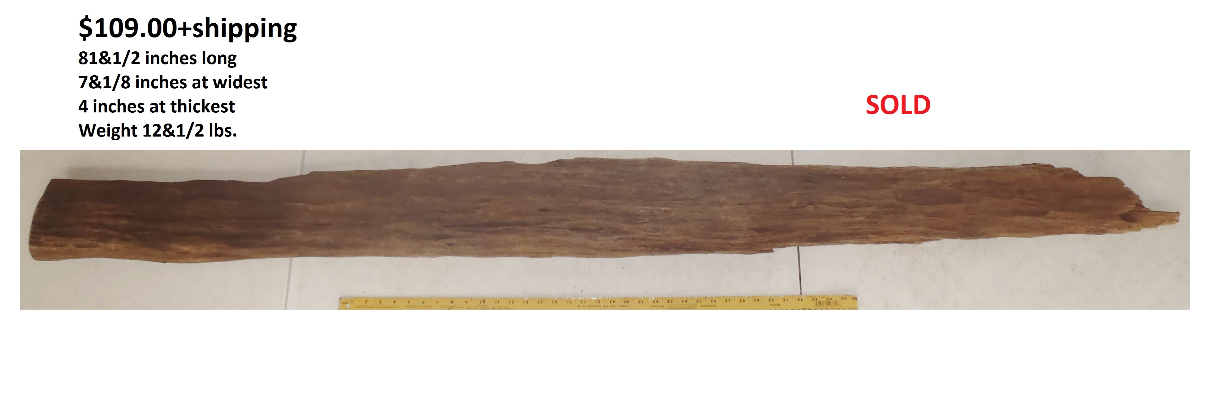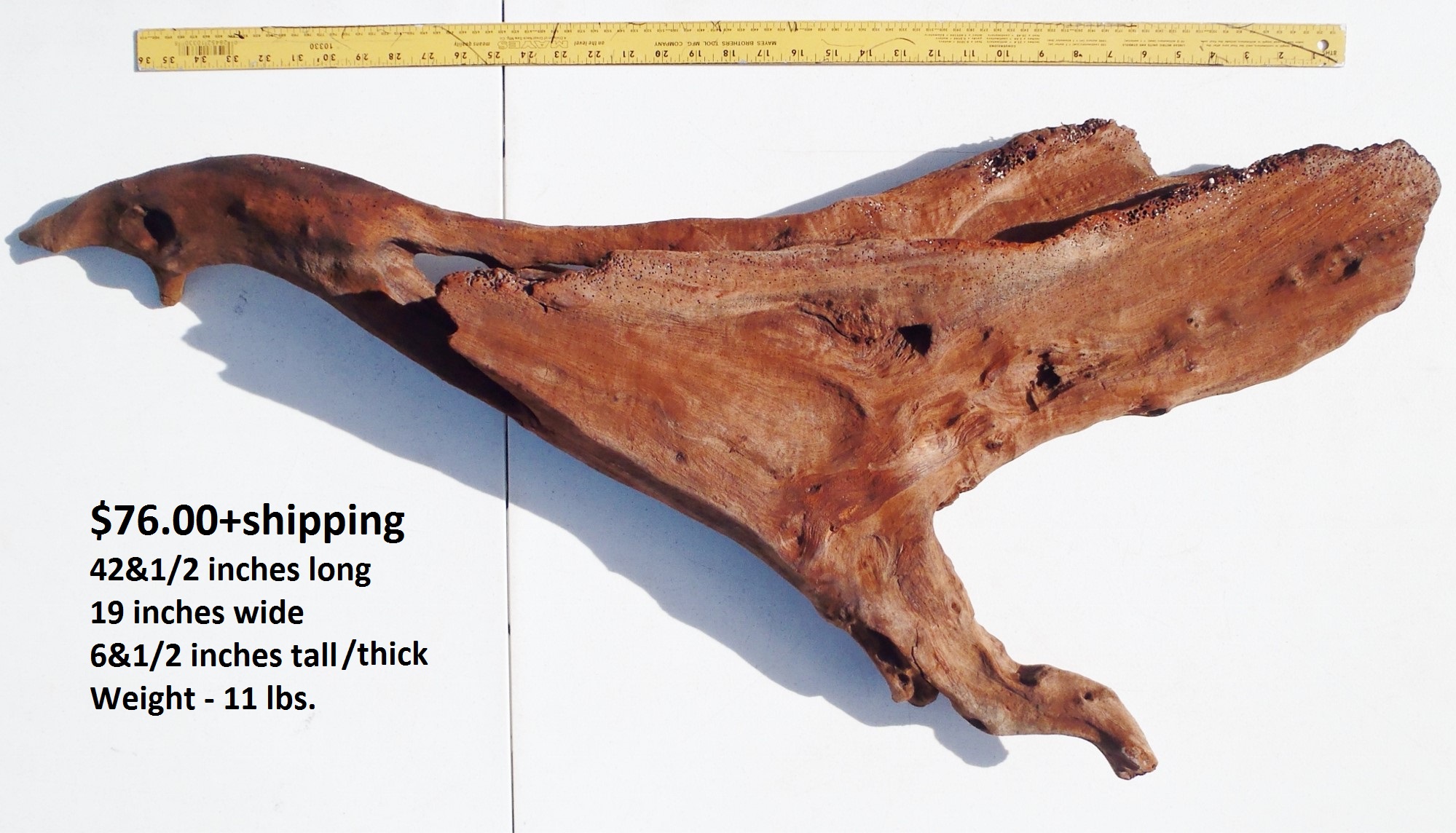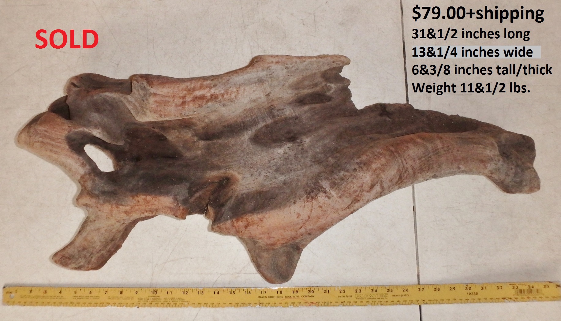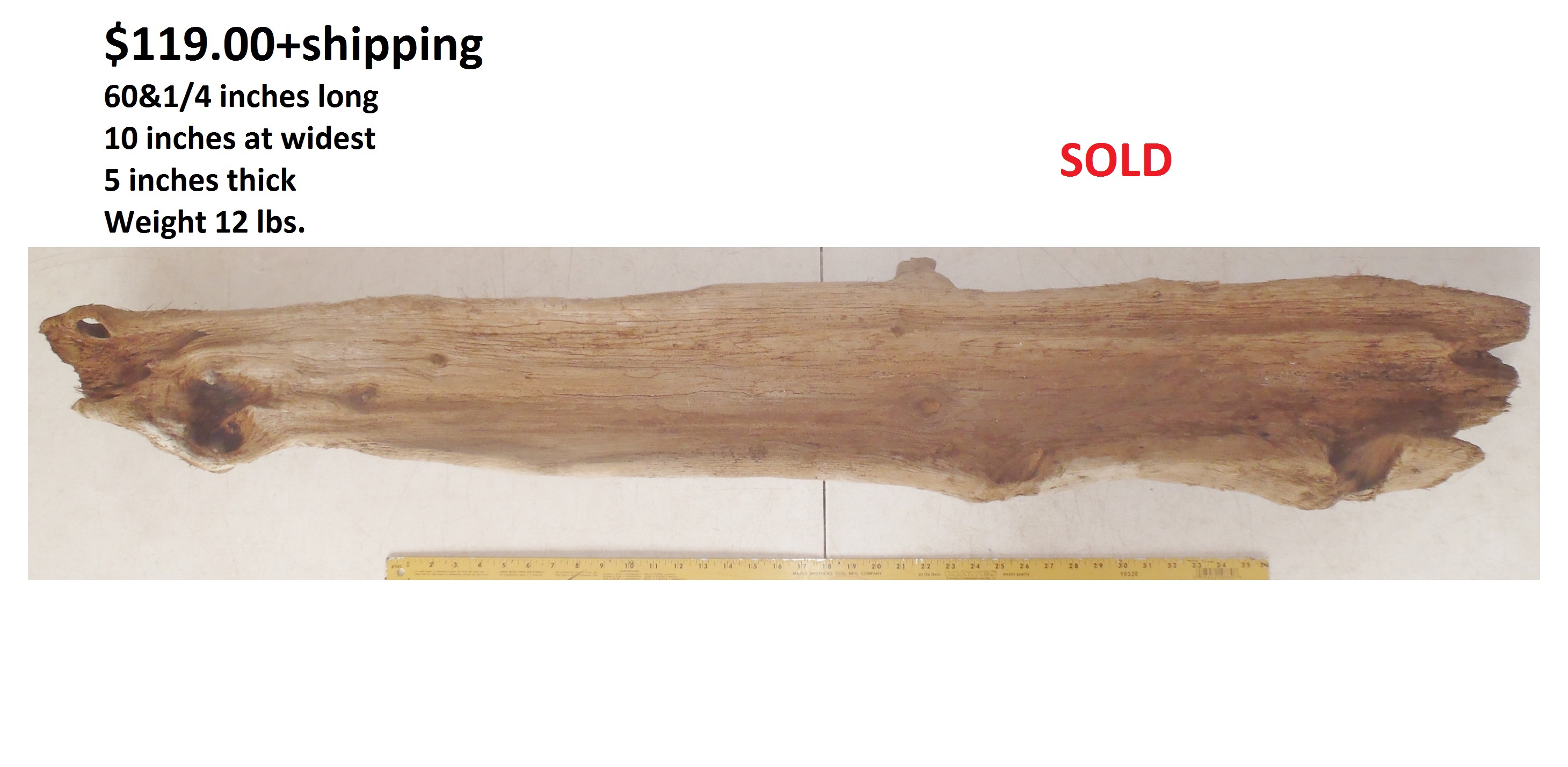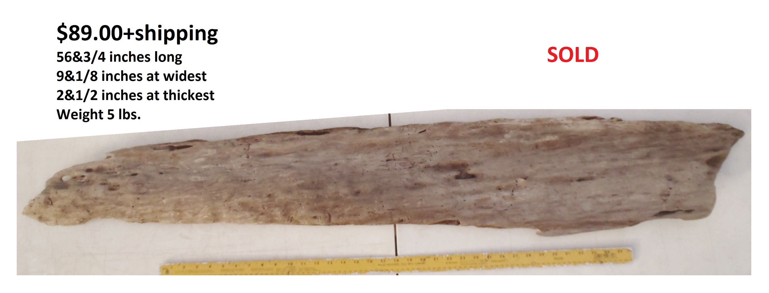 inches wide - 6&1/4 inches@thickest - Weight 5&1/4