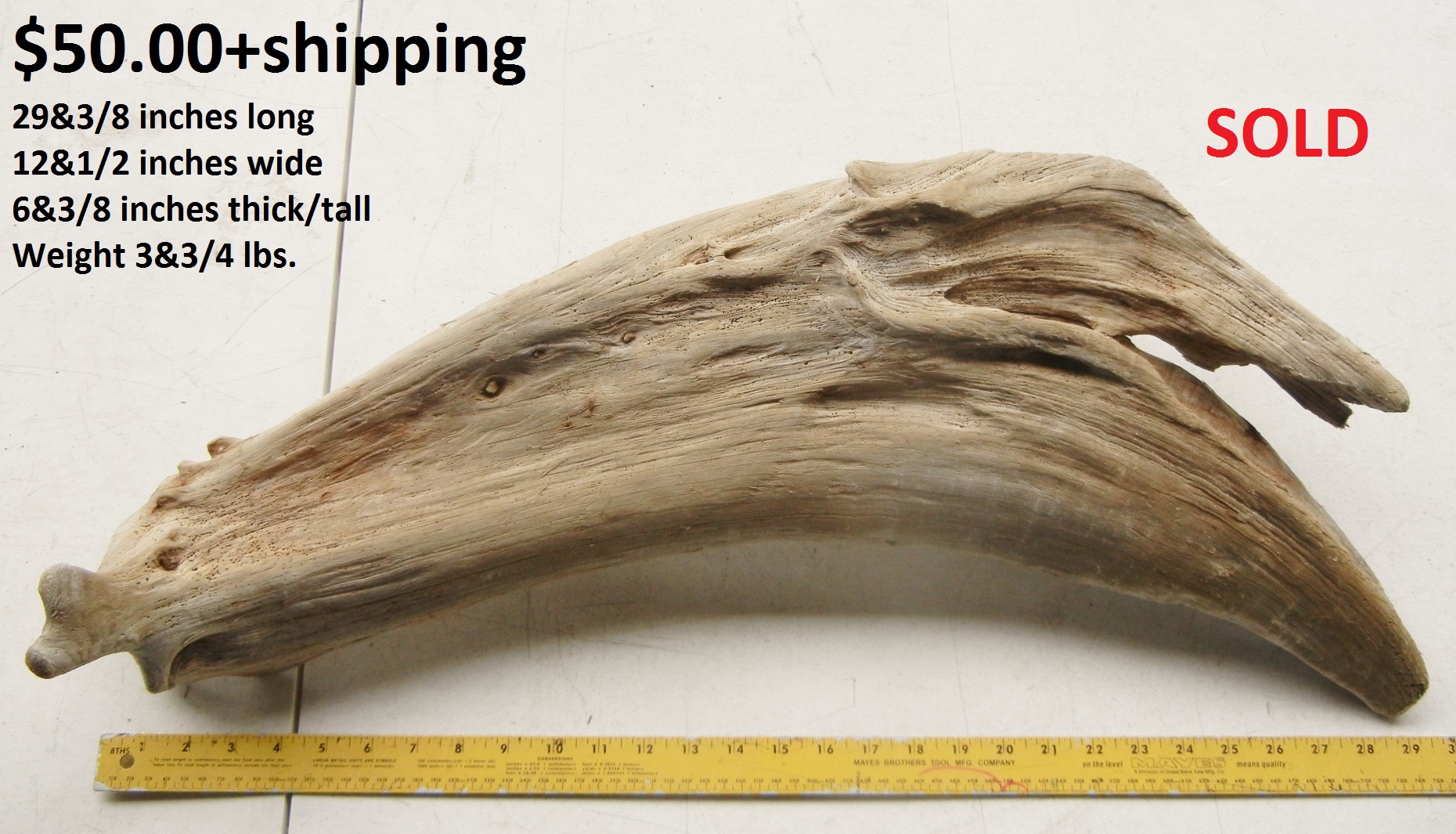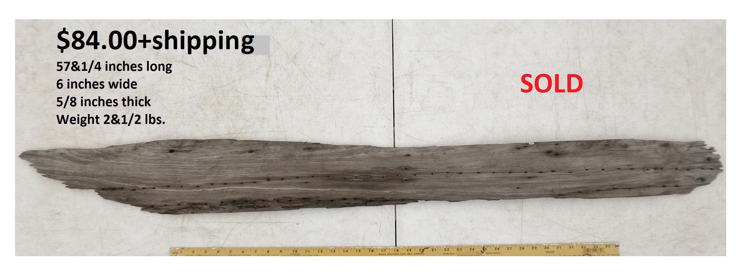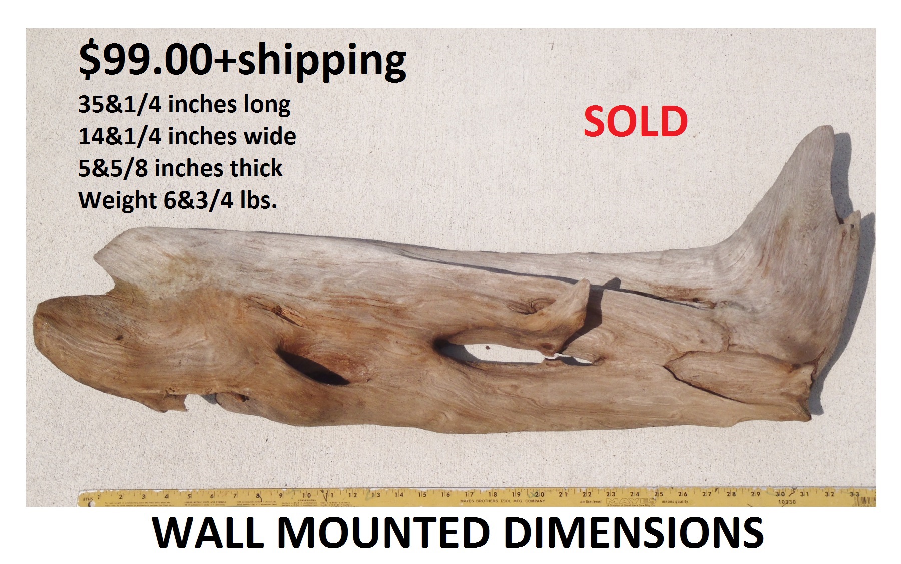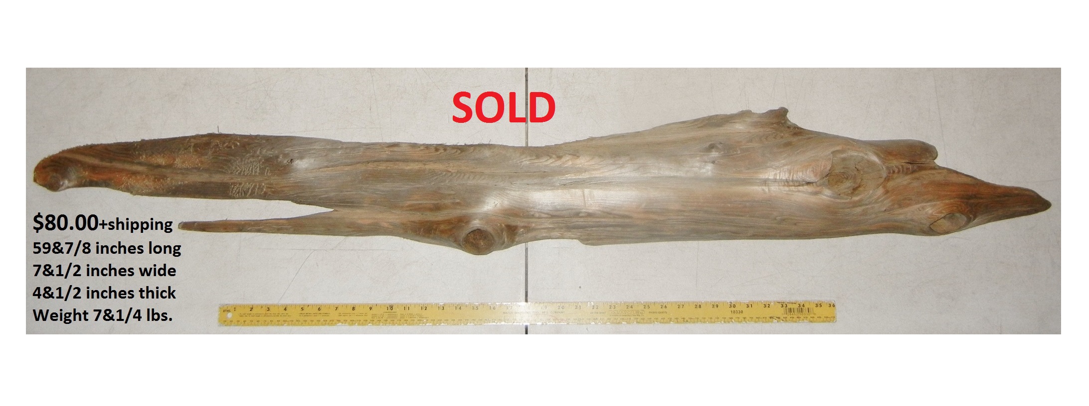inches wide - 6&1/4 inches@thickest - Weight 5&1/4