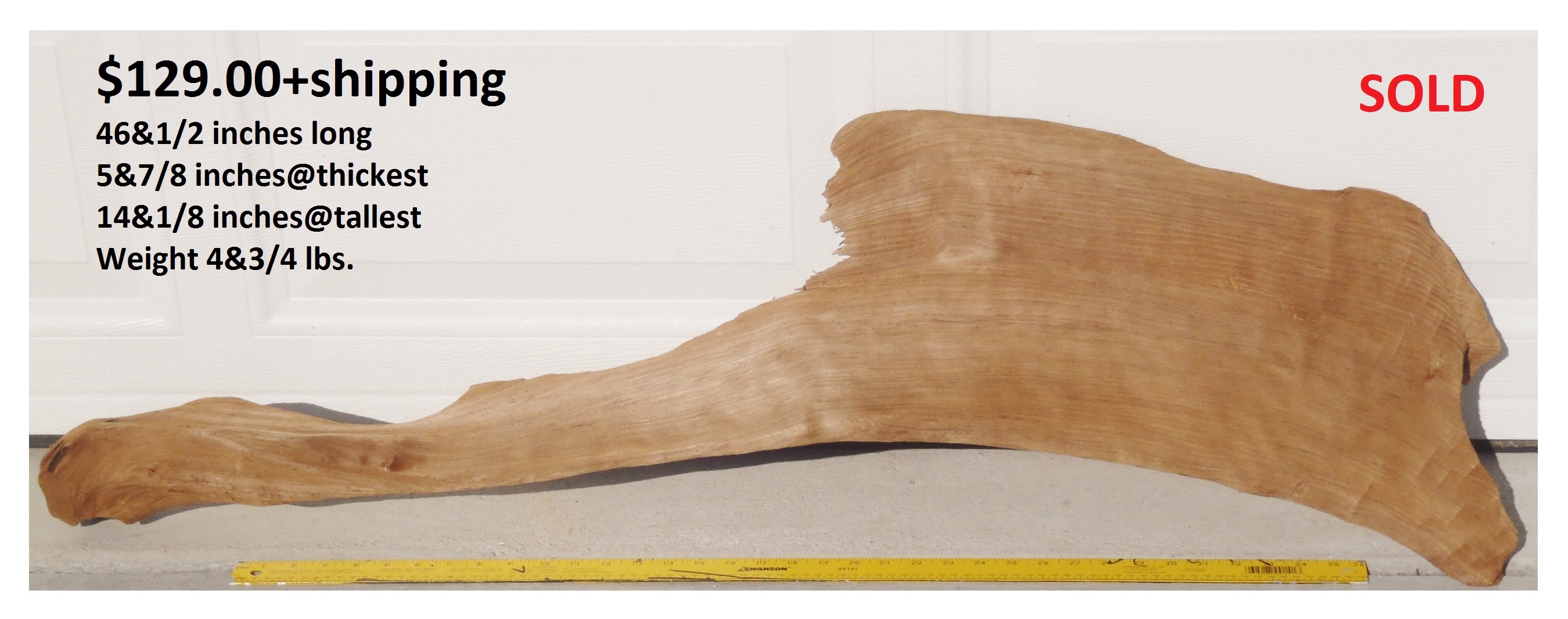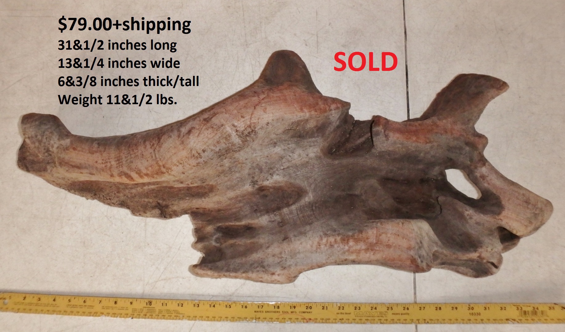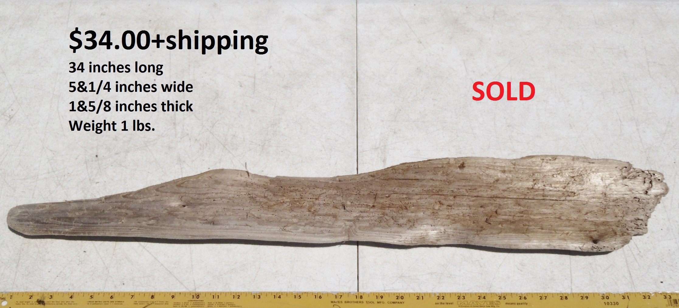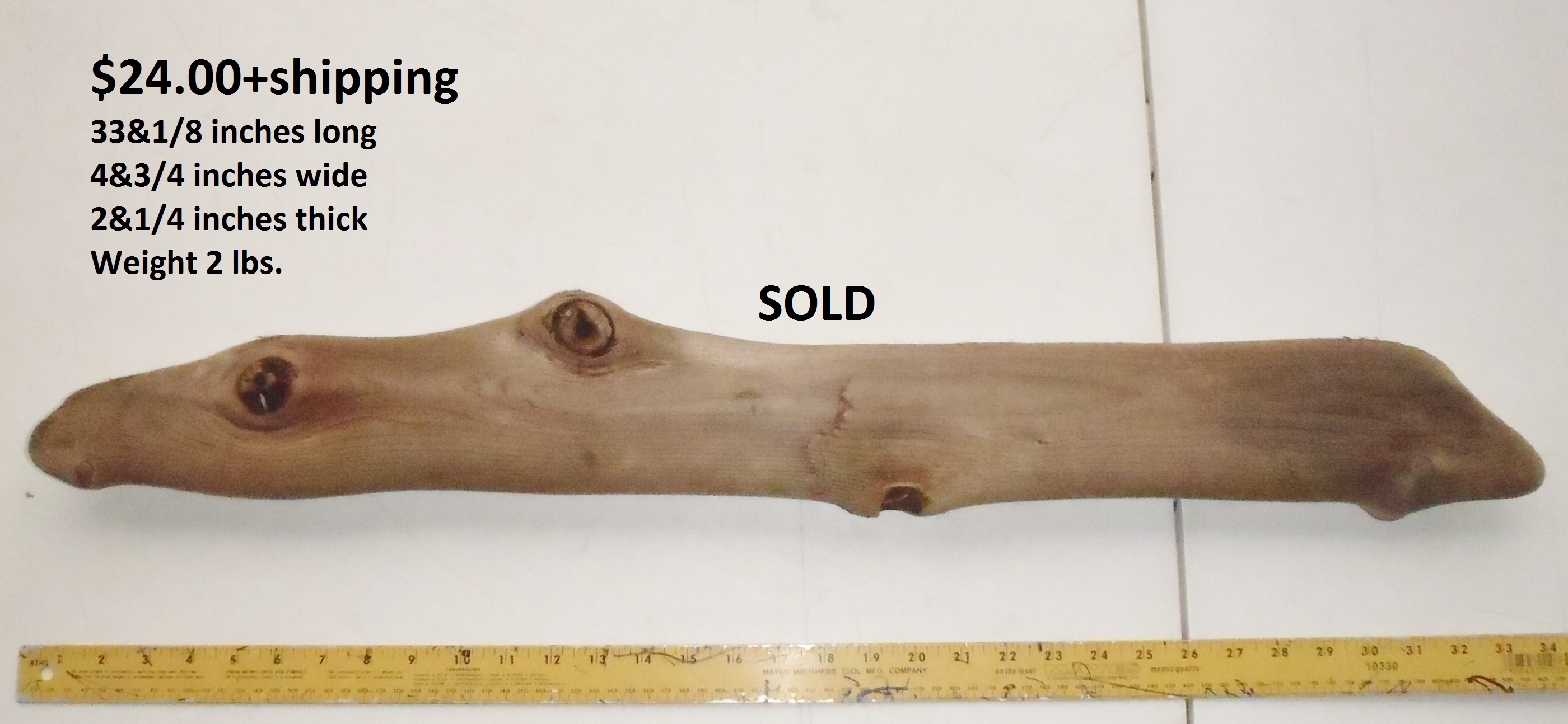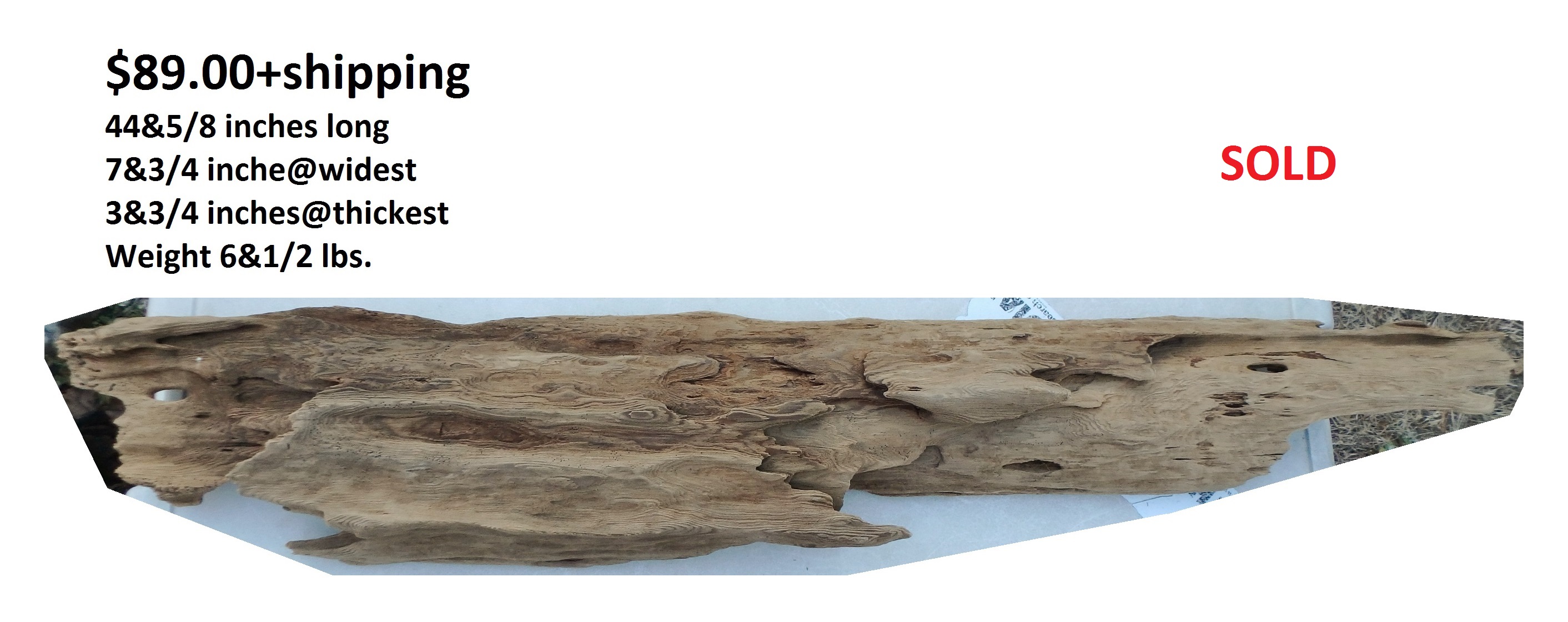 inches wide - 6&1/4 inches@thickest - Weight 5&1/4