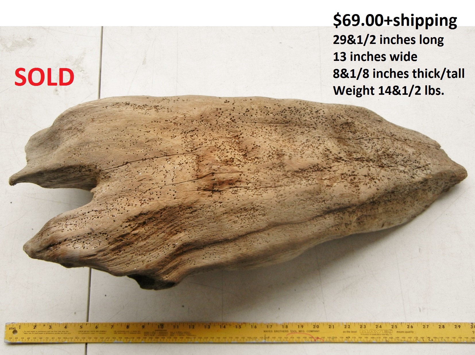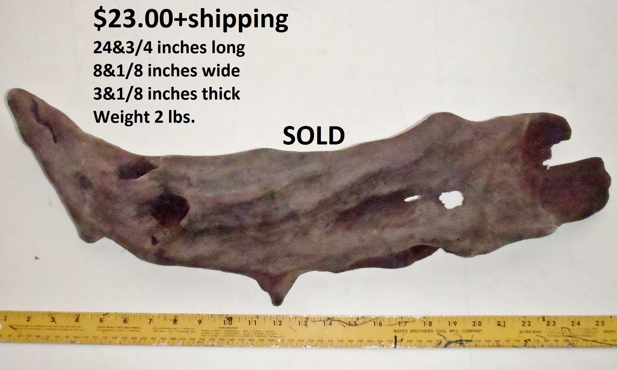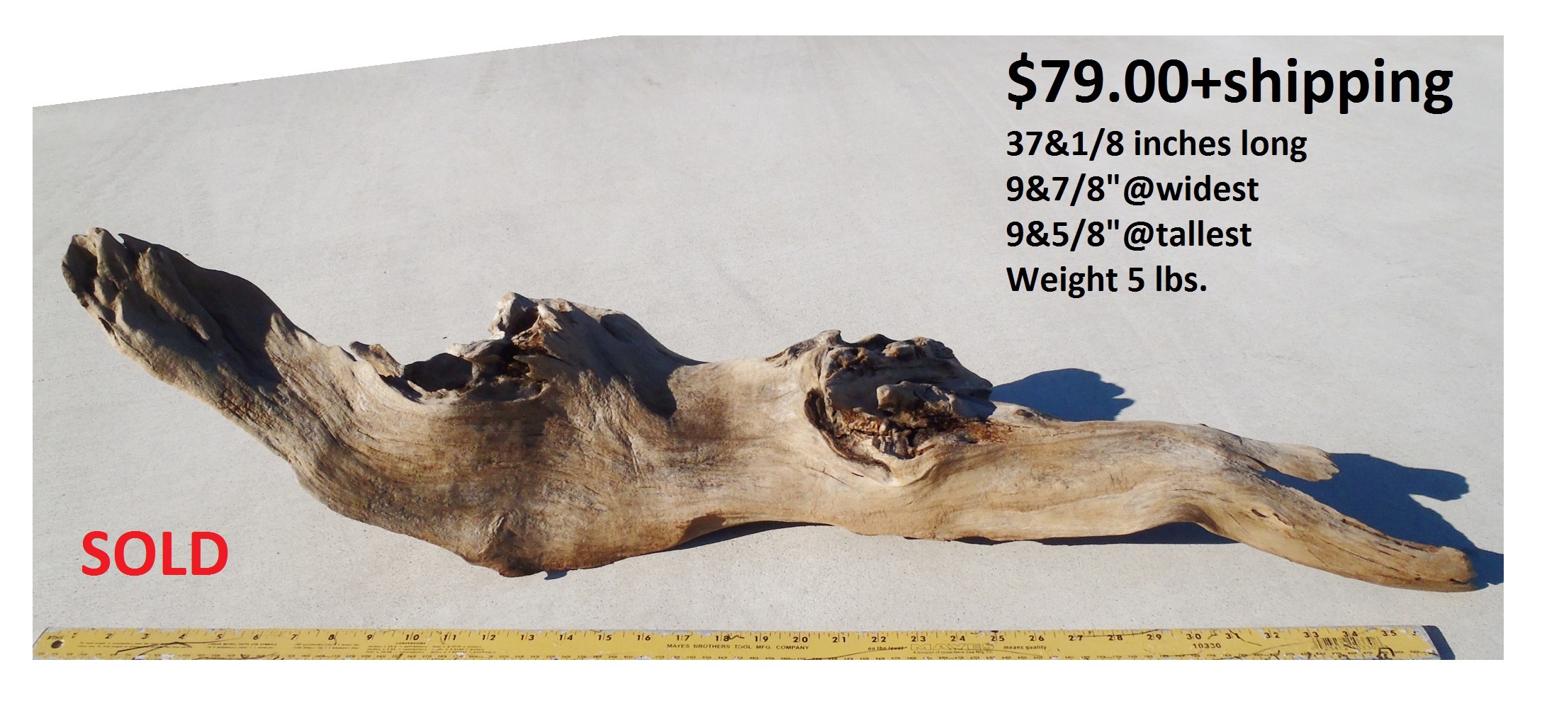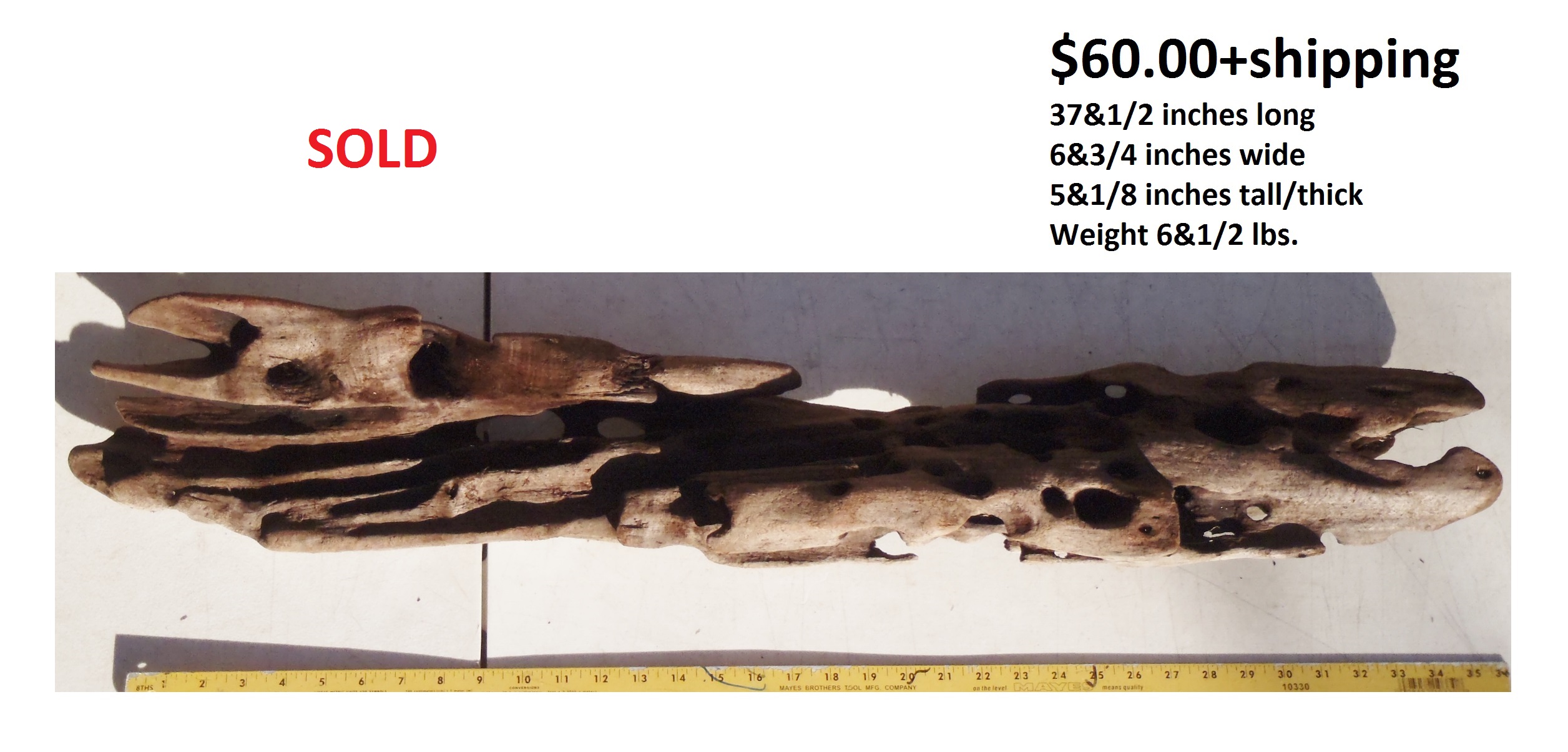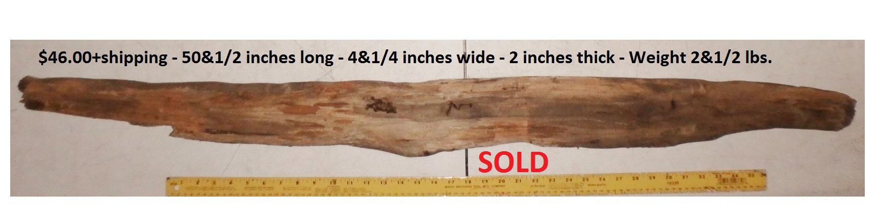 inches wide - 6&1/4 inches@thickest - Weight 5&1/4