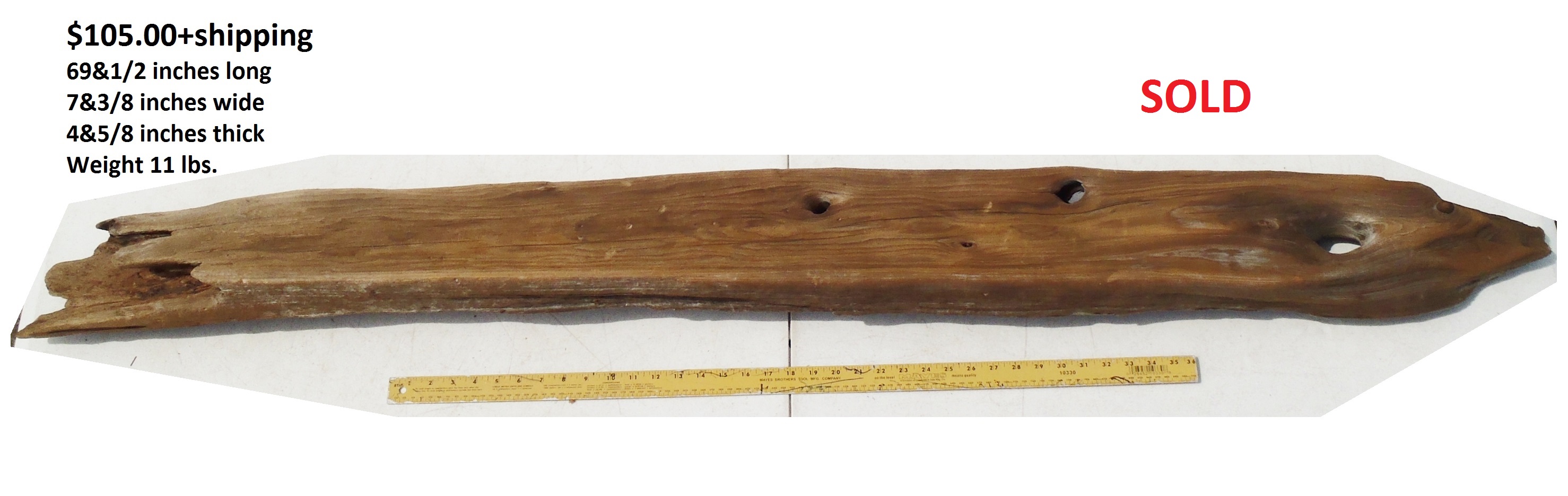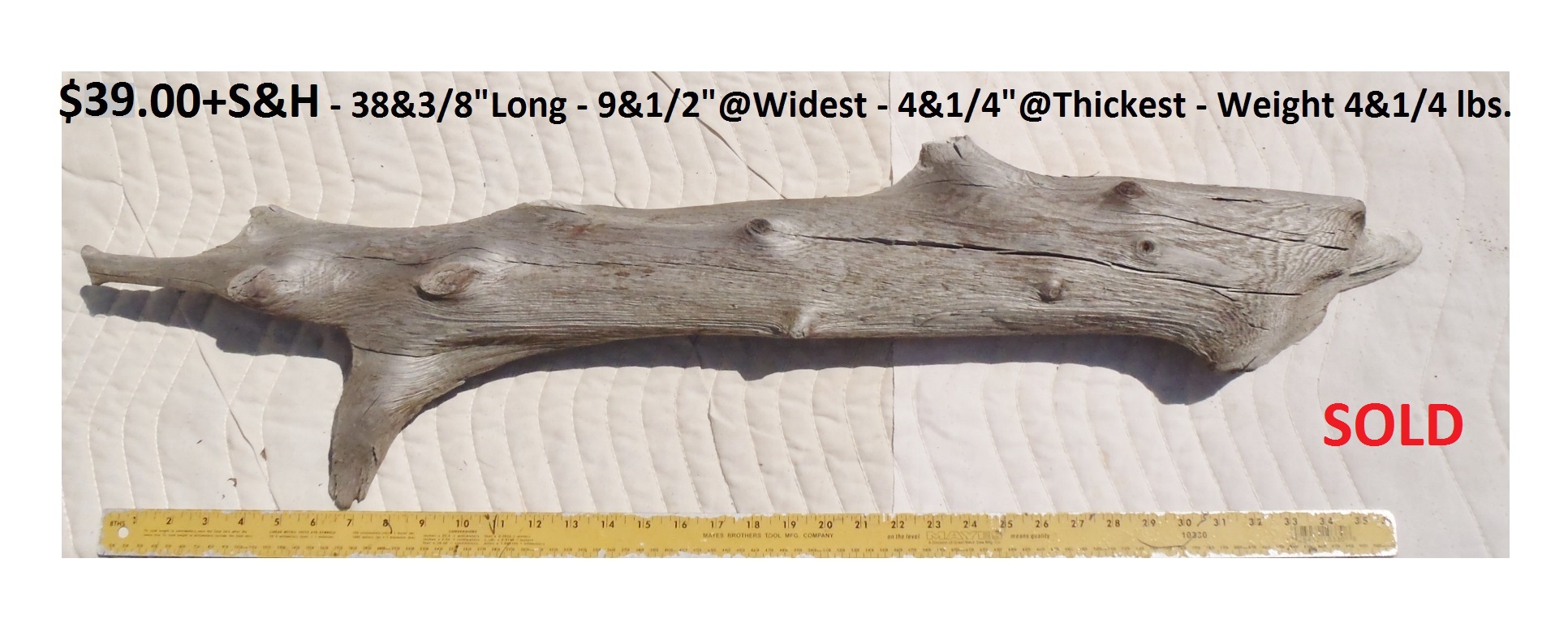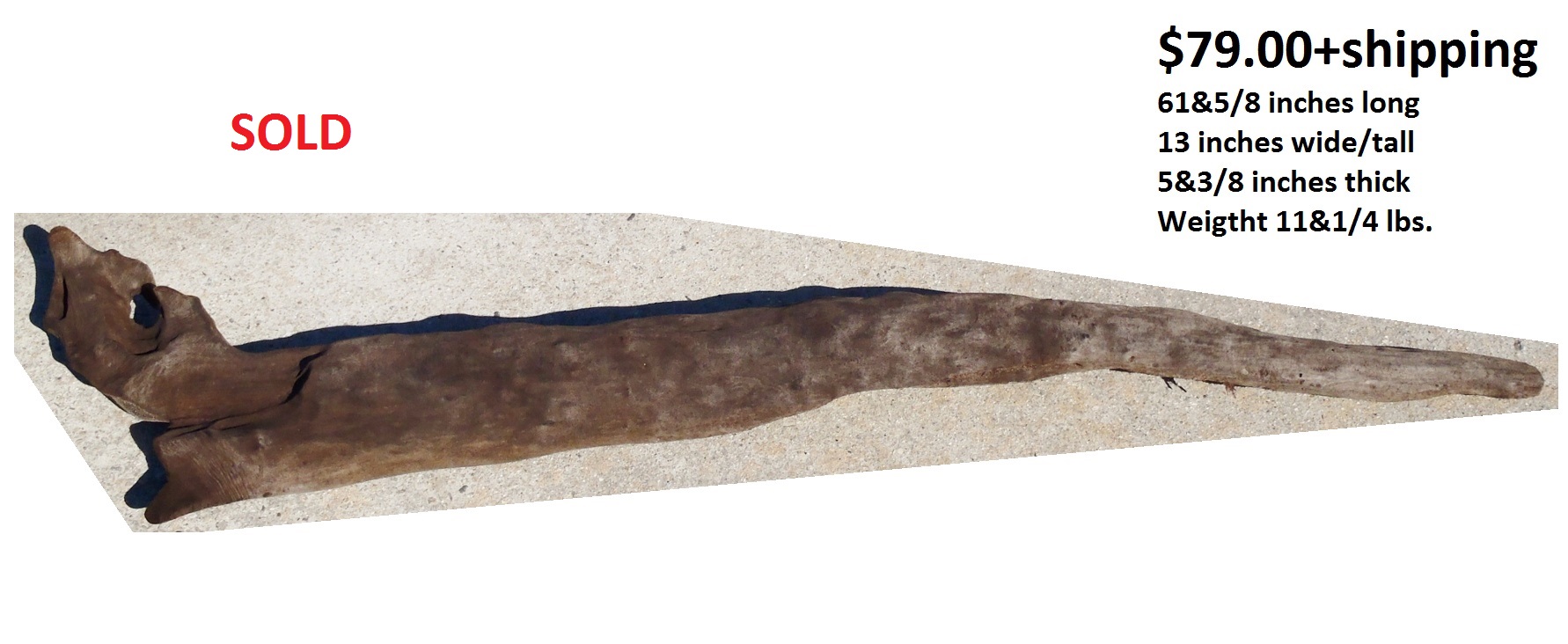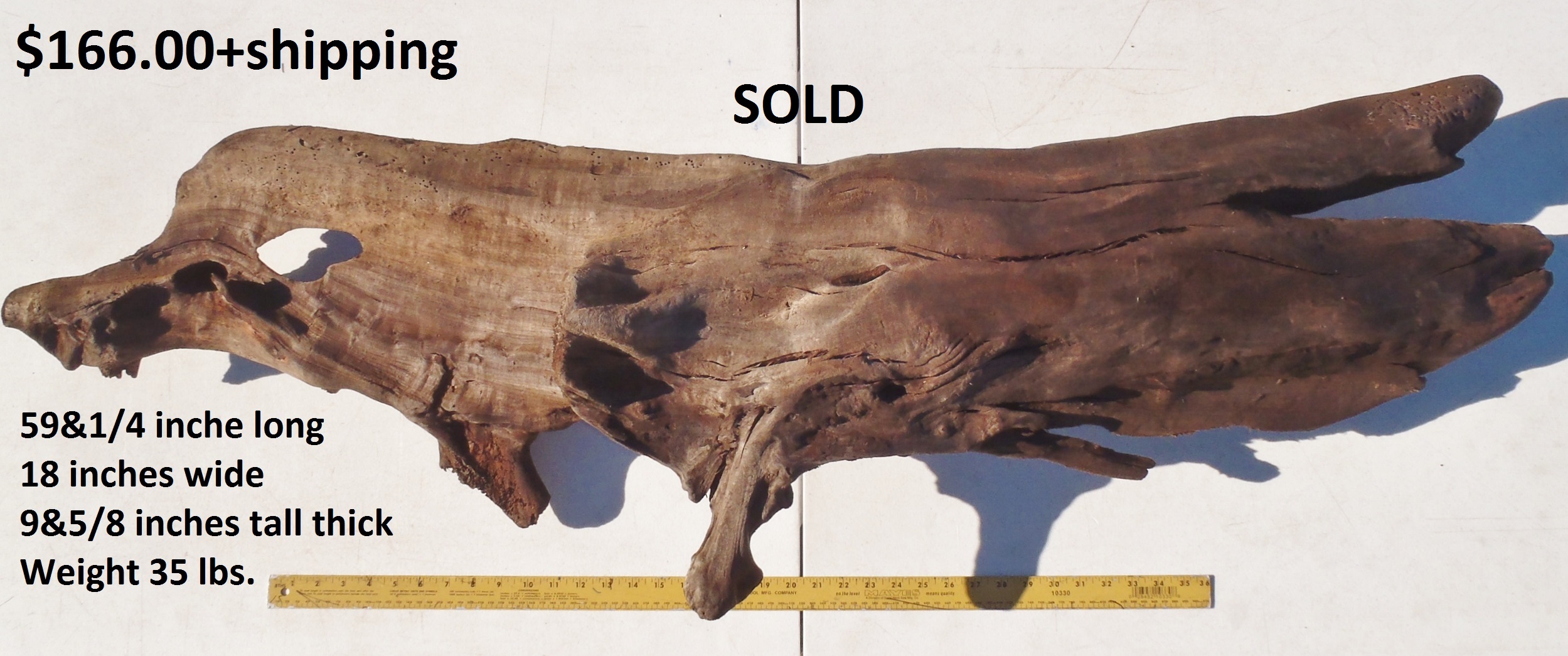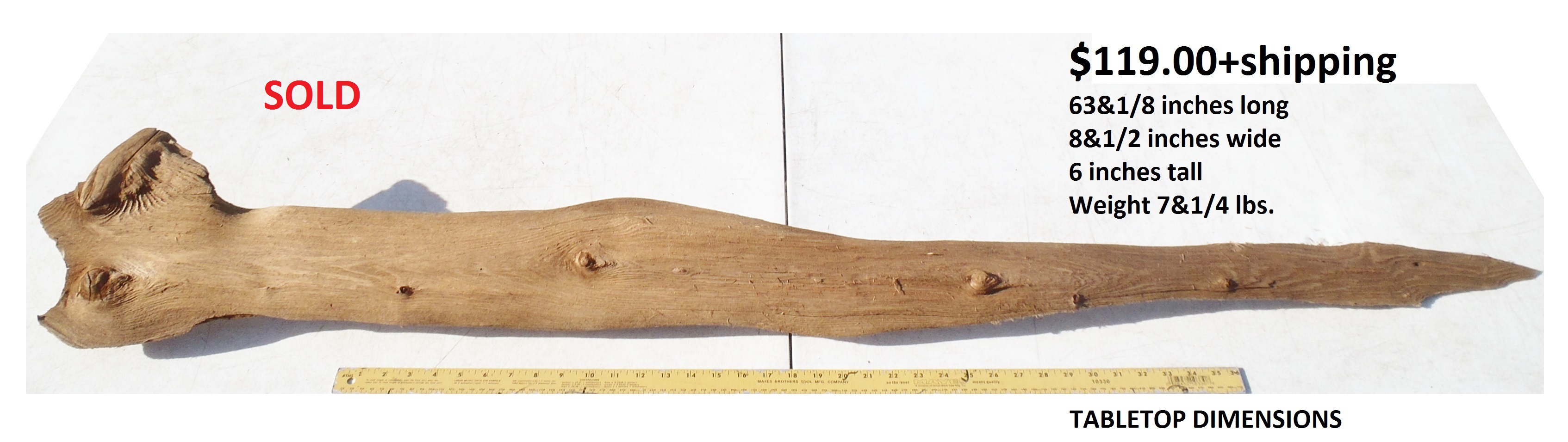 inches wide - 6&1/4 inches@thickest - Weight 5&1/4