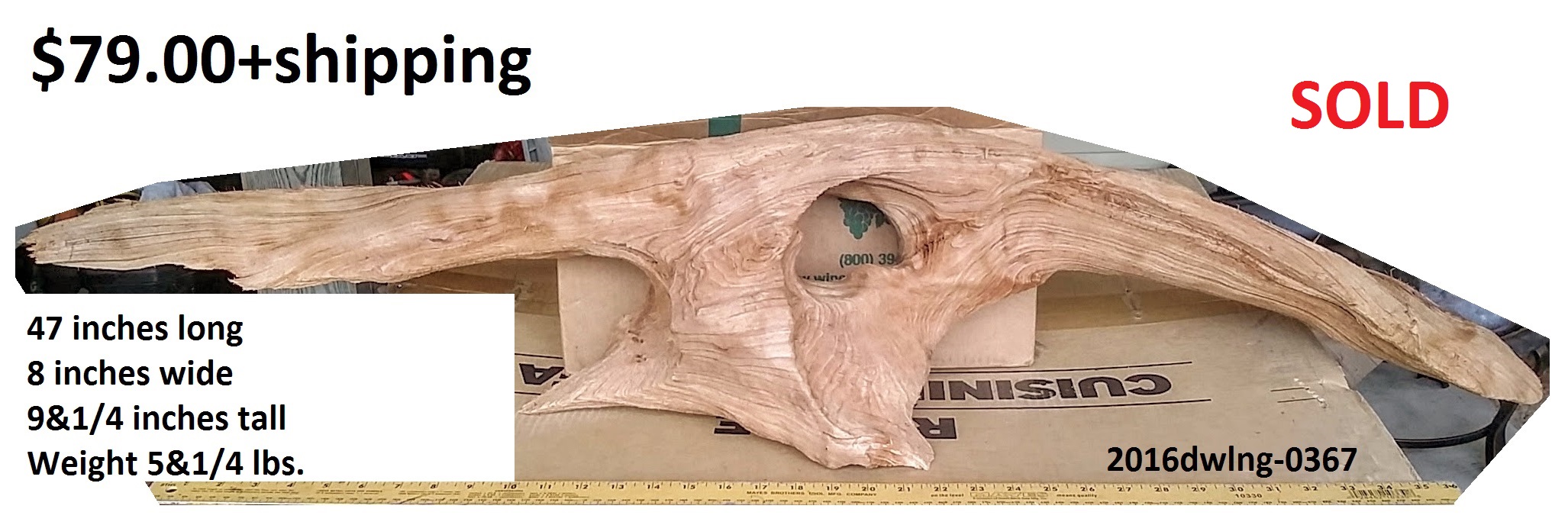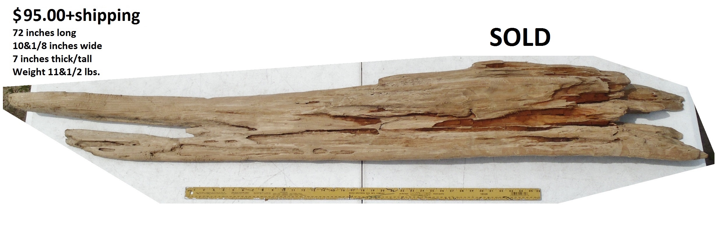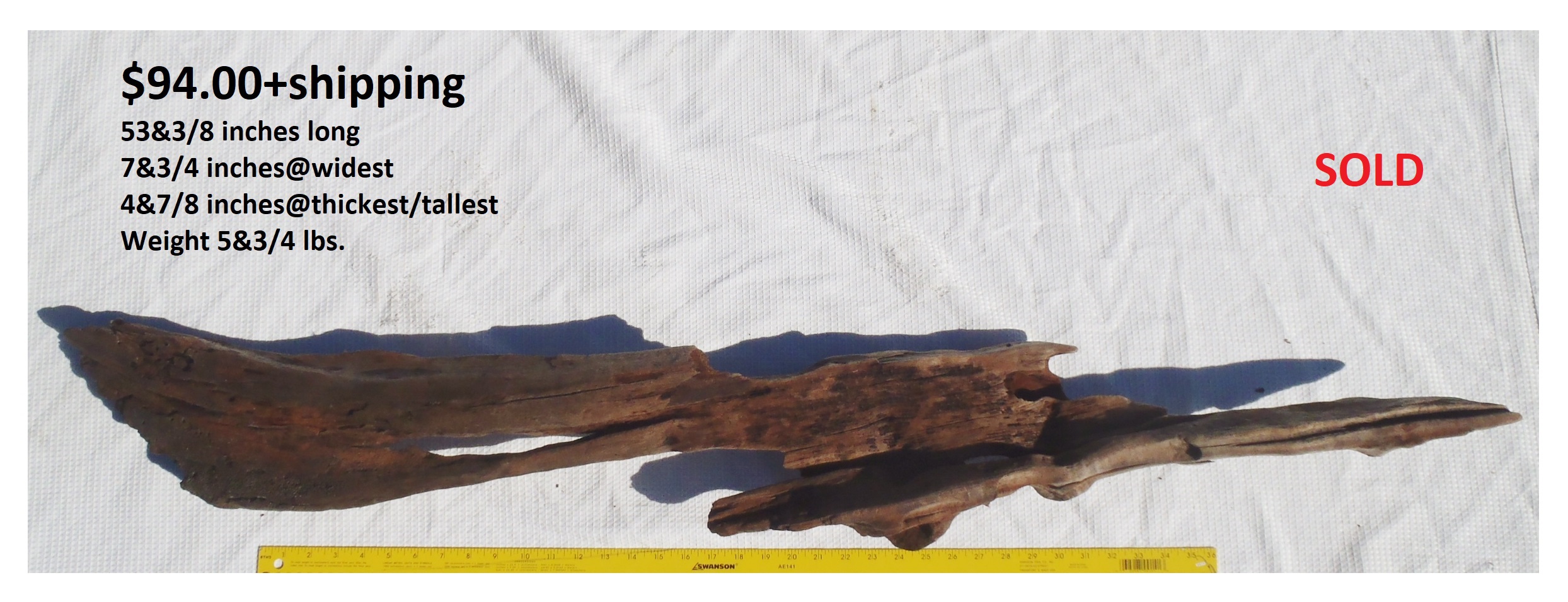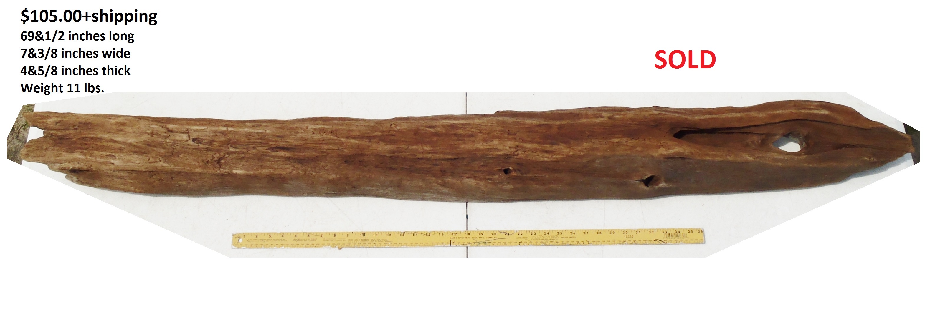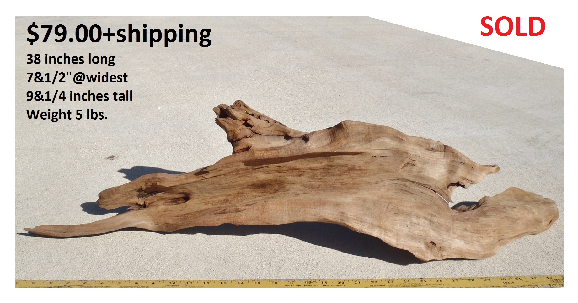 inches wide - 6&1/4 inches@thickest - Weight 5&1/4