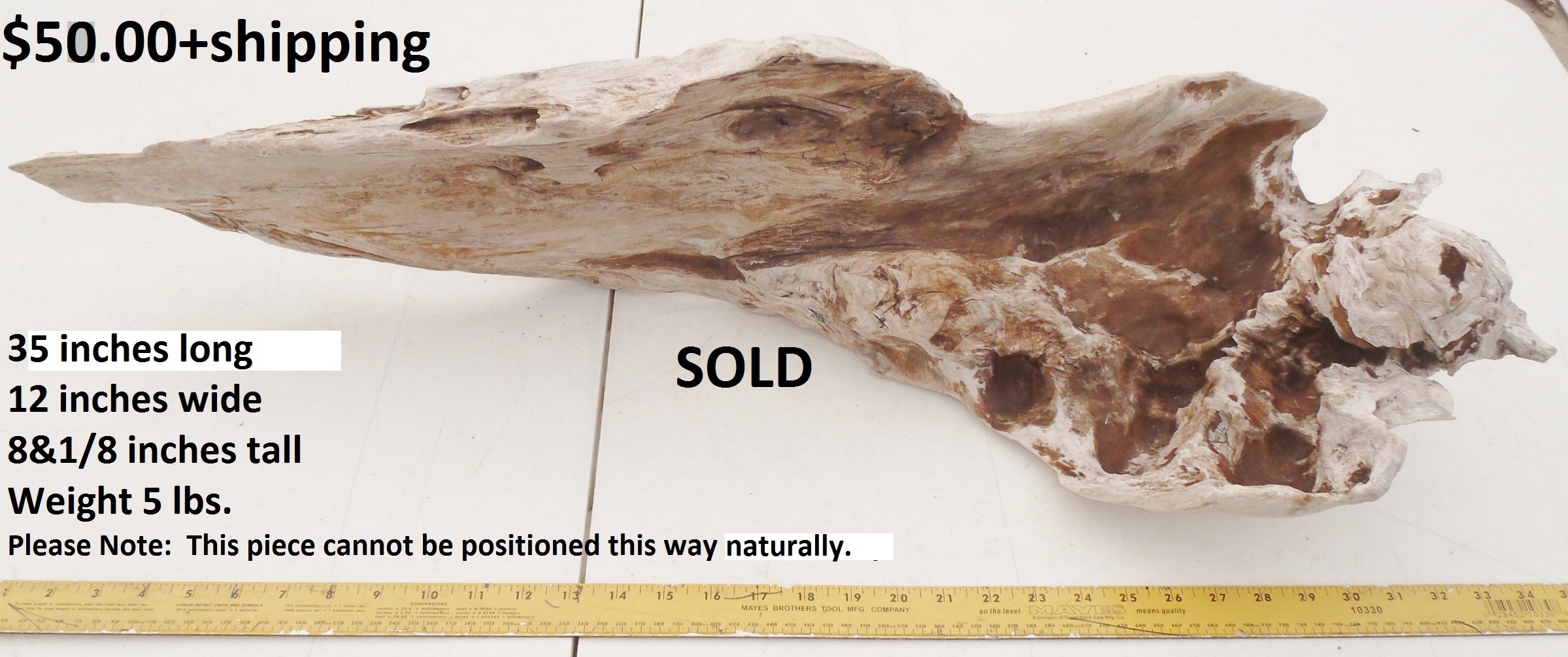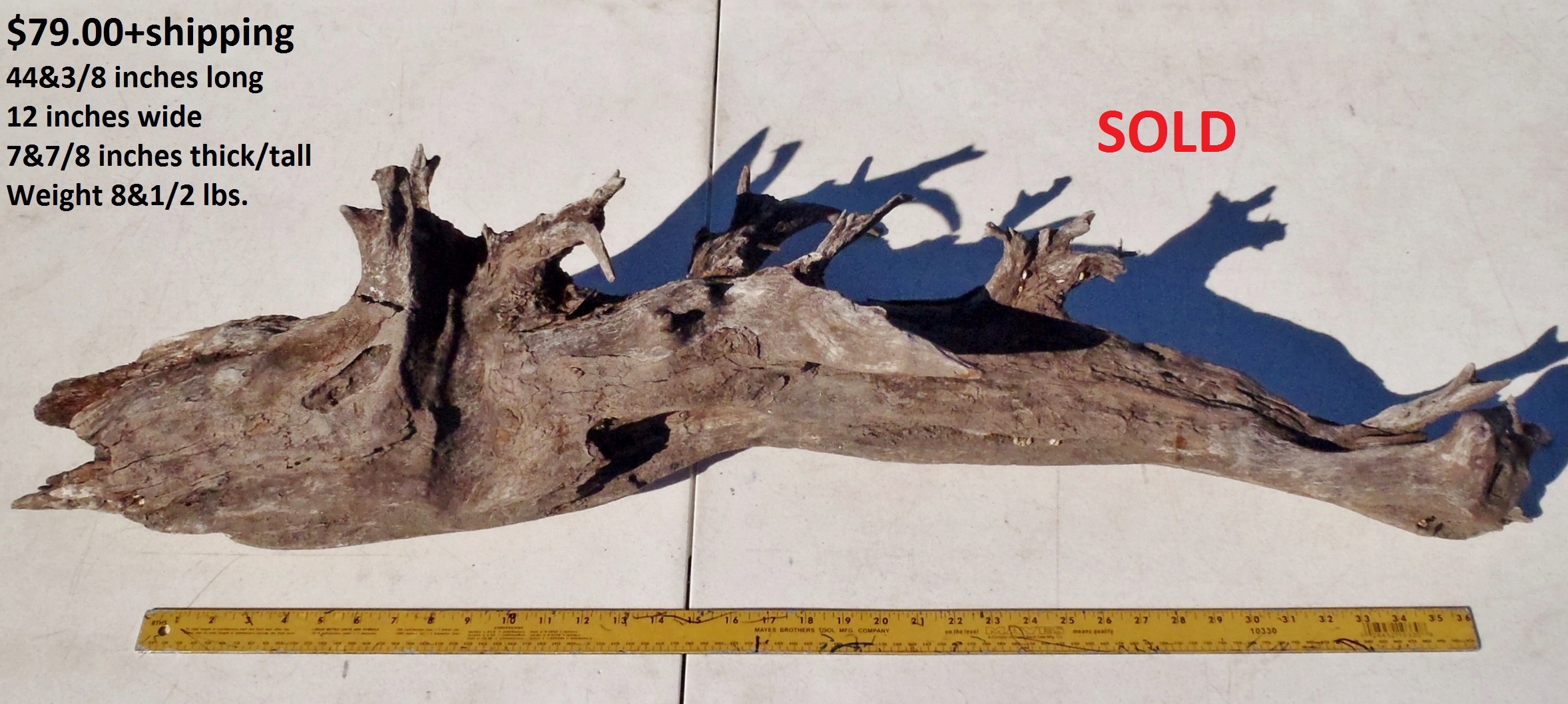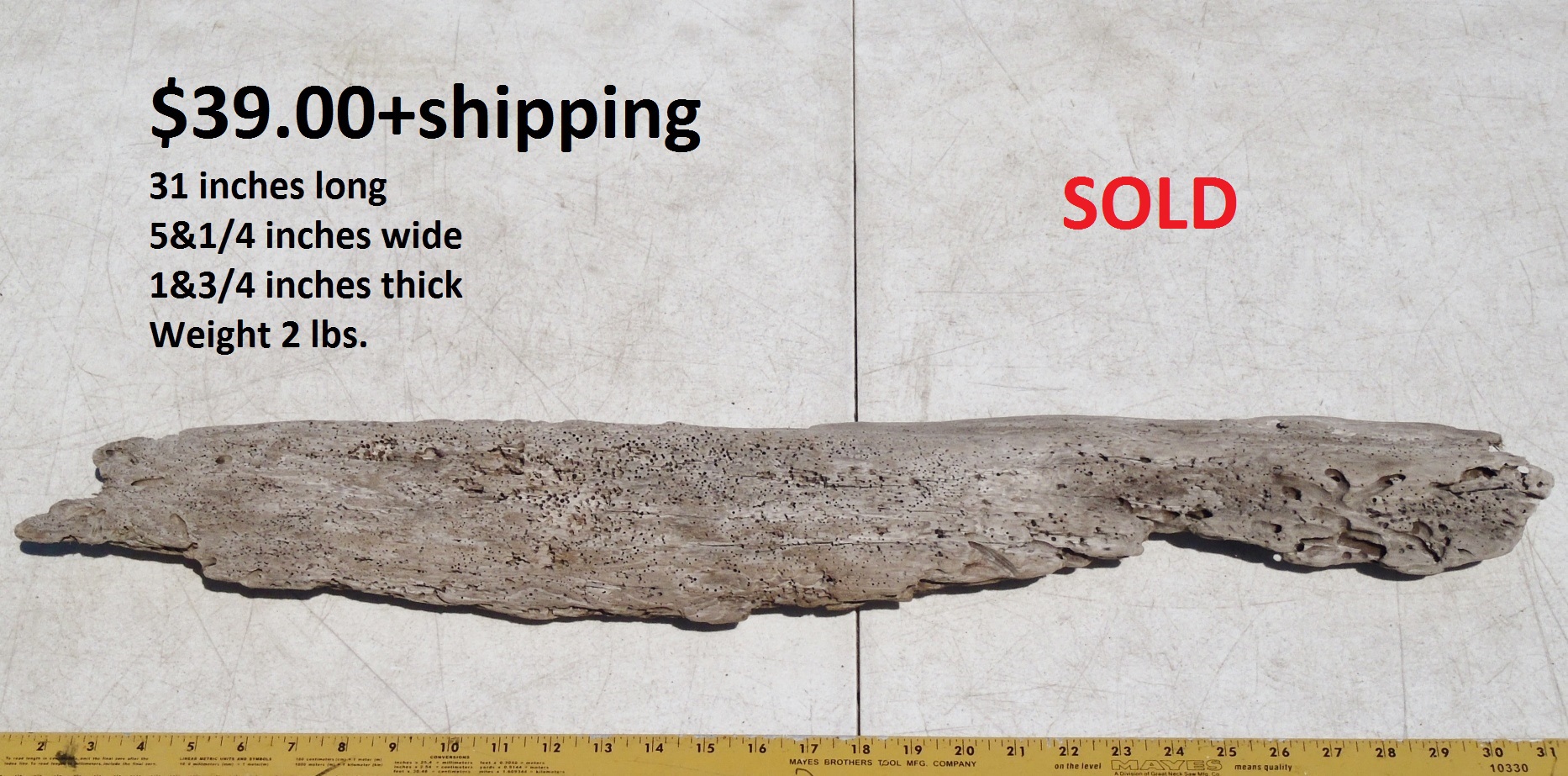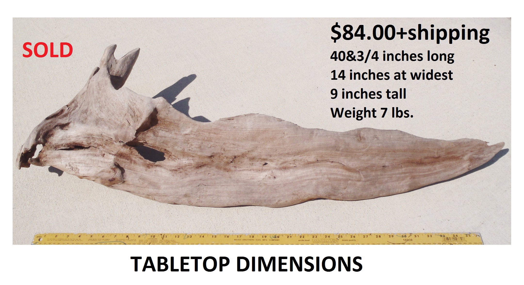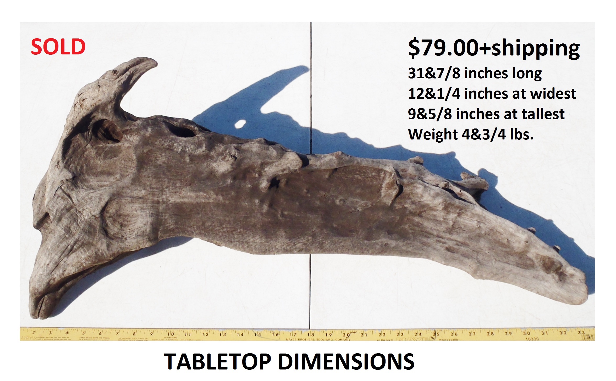 inches wide - 6&1/4 inches@thickest - Weight 5&1/4