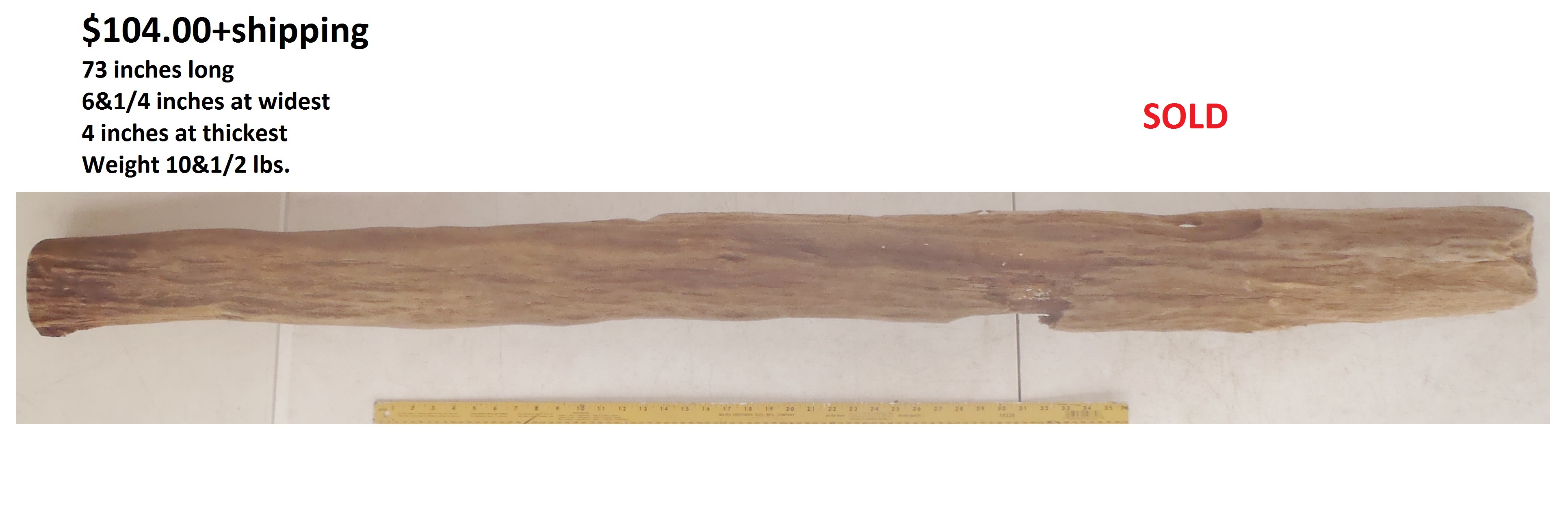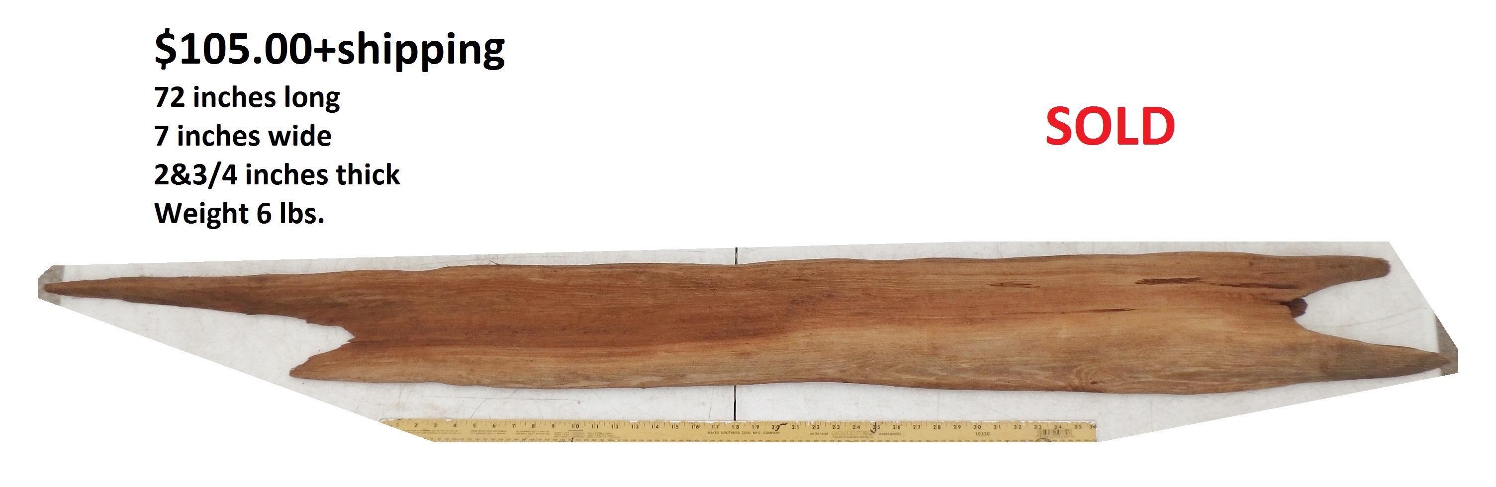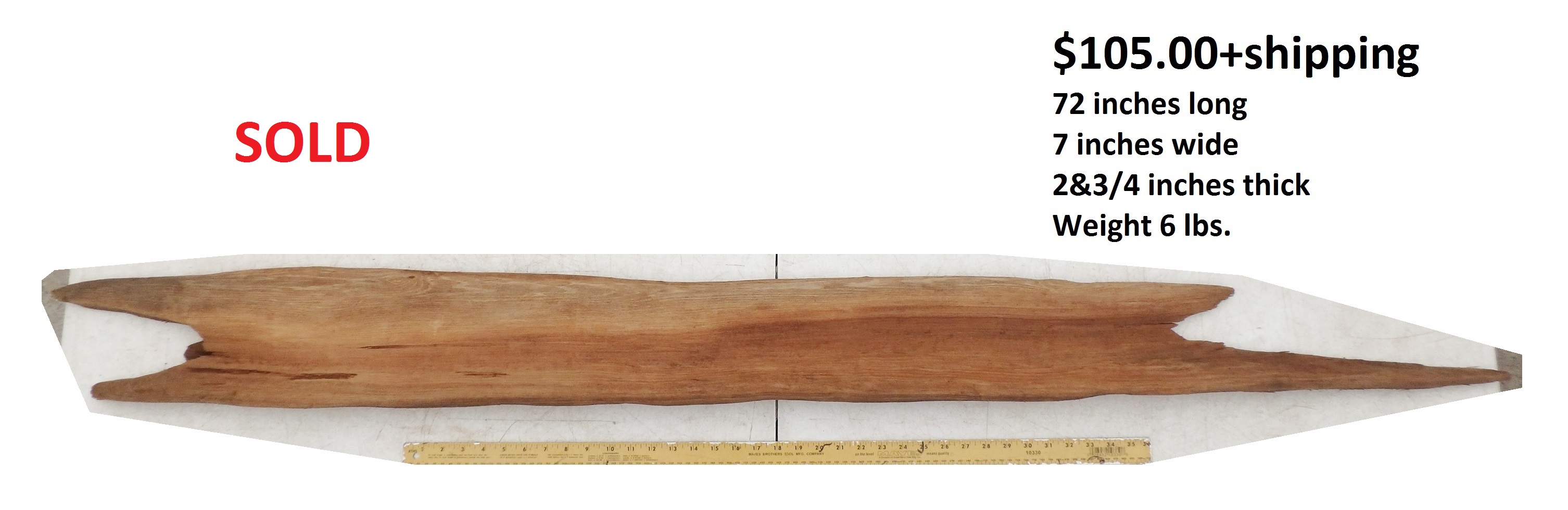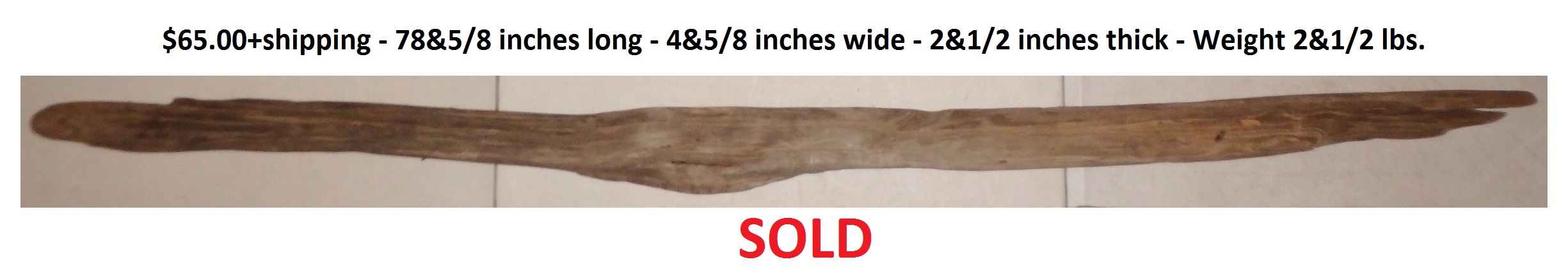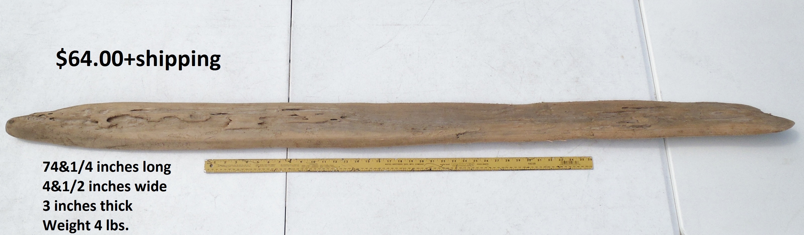 Dimensions: 73 inches long - 6&3/4 inches@widest -