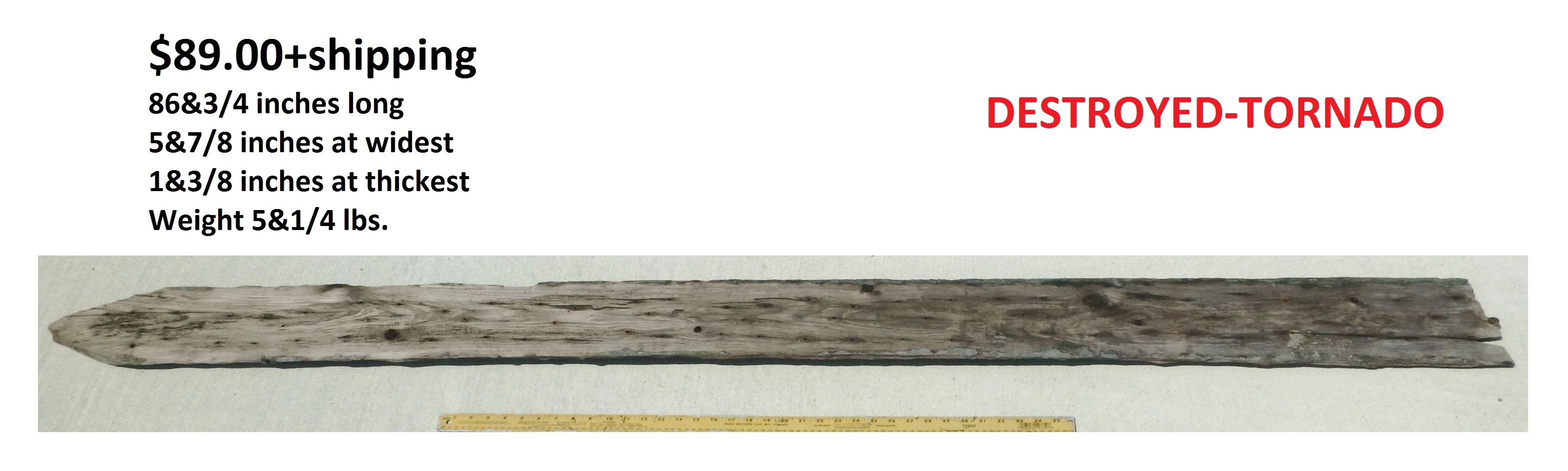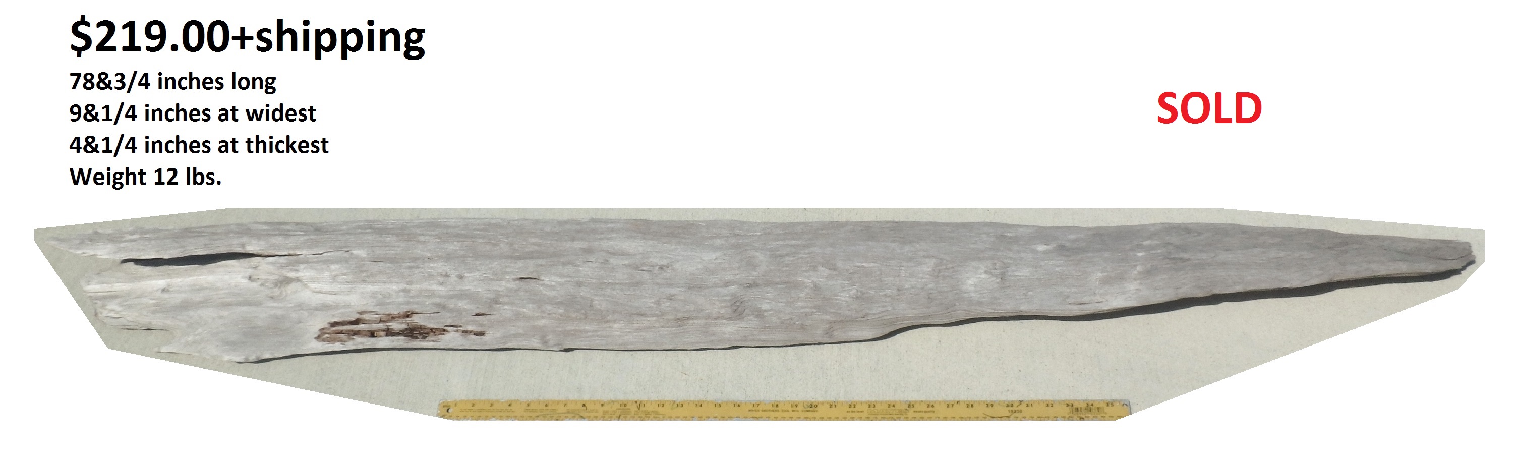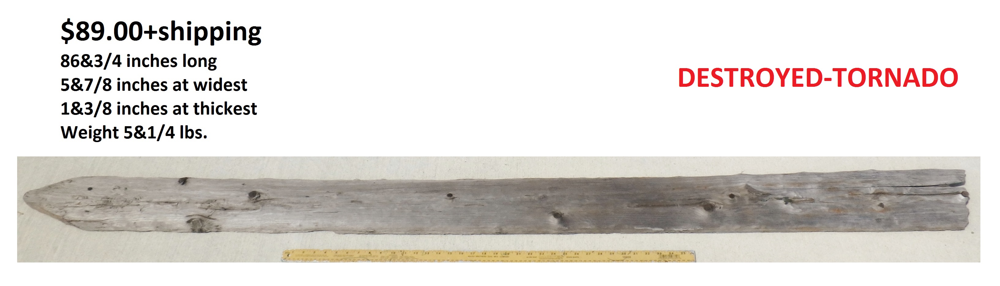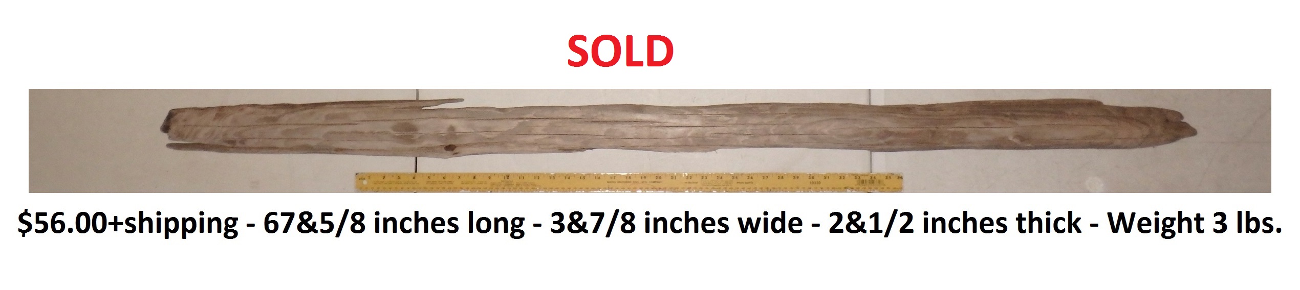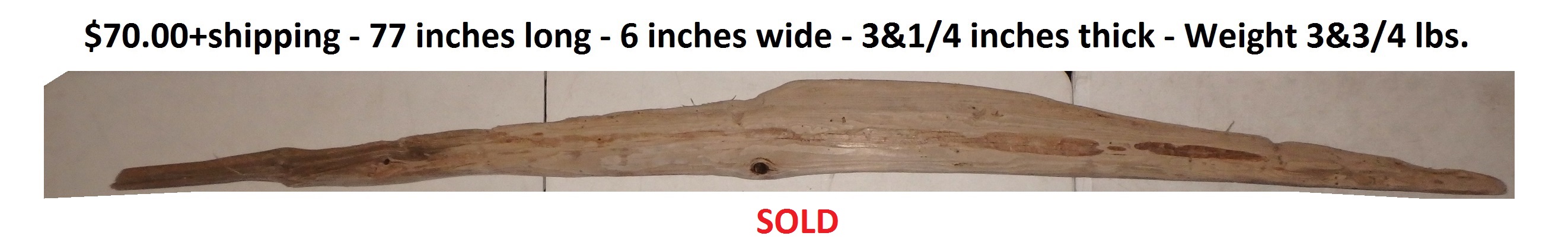 Dimensions: 73 inches long - 6&3/4 inches@widest -