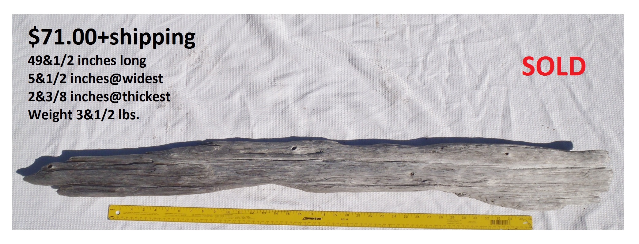 Dimensions: 49 inches long - 21&3/4 inches wide -